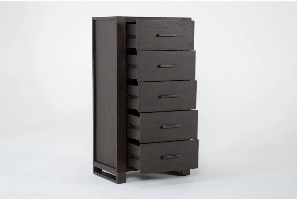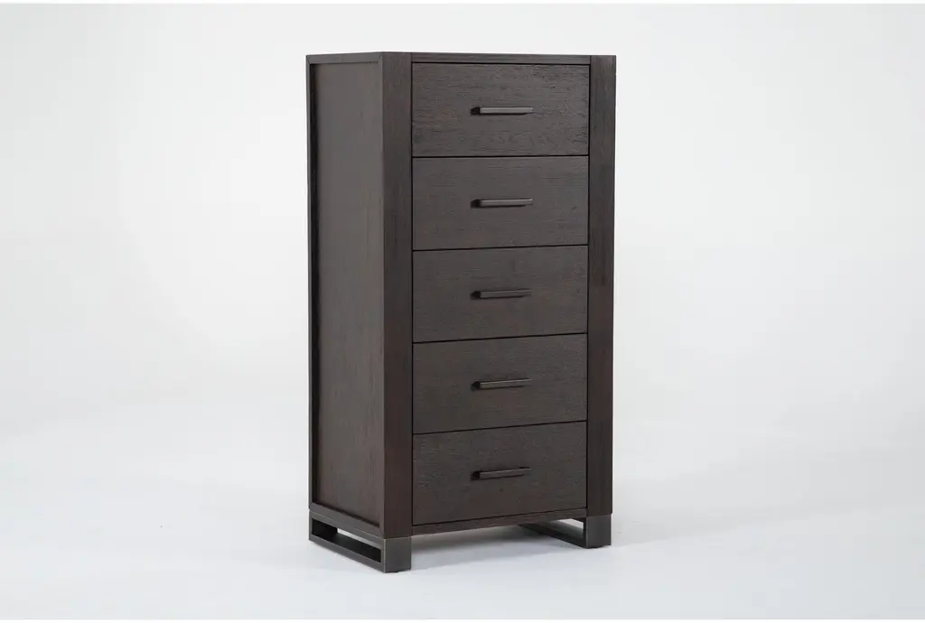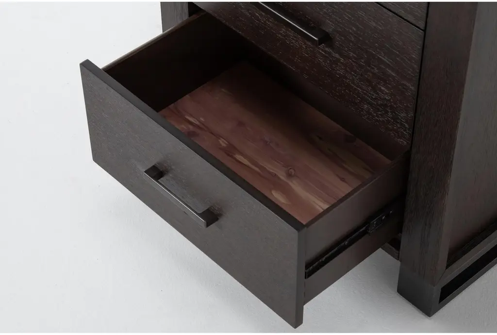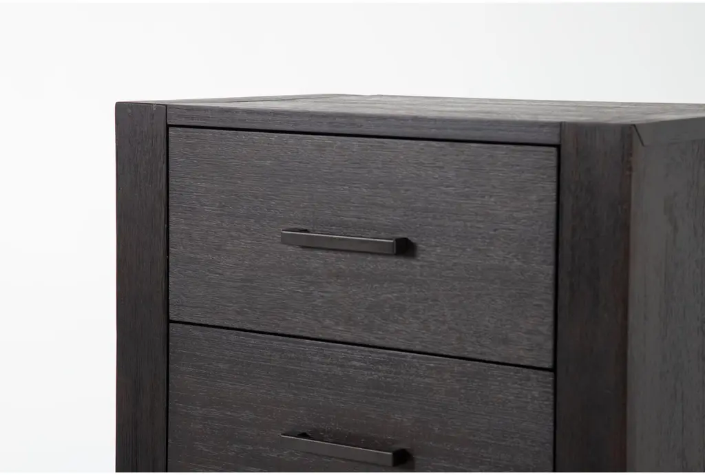 Mixing metal and wood results in a compelling marriage of materials, and our Lars bedroom collection showcases the combination in all its glory. Designed and developed by Living Spaces, these streamlined designs feature sleek steel with solid wood and acacia veneers to create a dark and handsome look that will enrich your space. Whether you want to lean more rustic or industrial in style, these pieces will play the role to perfection. With features like dovetail drawer boxes and cedar-lined bottom drawers, you can rest easy trusting in this set’s integrity and quality.