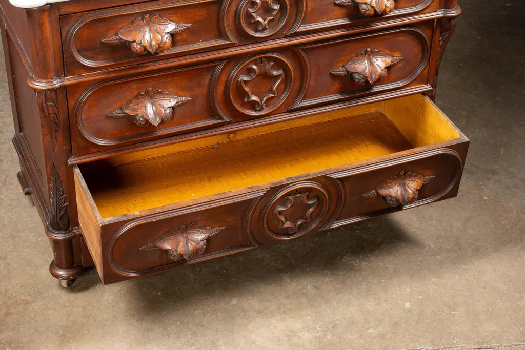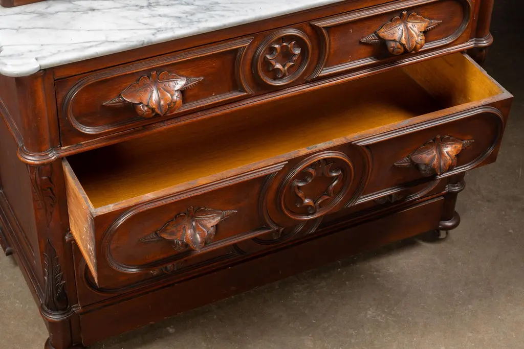 Late 19th Century Eastlake Victorian Walnut Dresser With Mirror And Marble Top