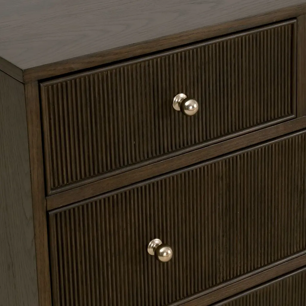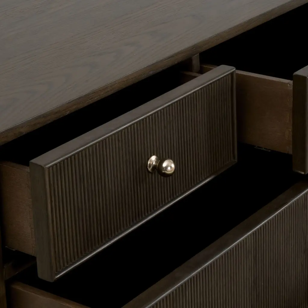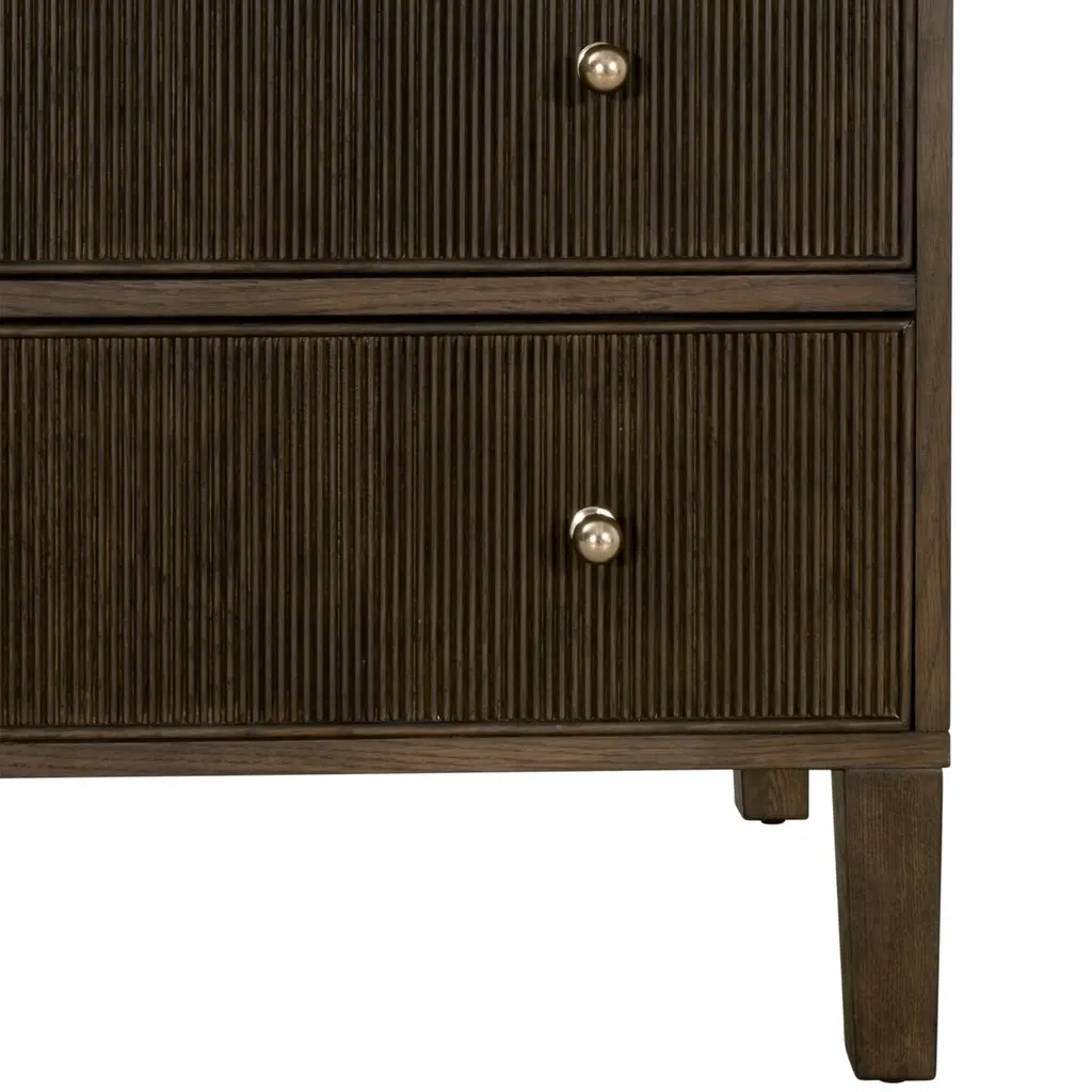 The Linden 8-Drawer Double Dresser combines unique style and functionality. This extraordinary piece is crafted with attention to detail, featuring beautiful wood grain and fluted wood drawer fronts that add character and dimension. The drawer knobs provide both simplicity and elegance. Measuring 67.5” wide, 20” deep, and 32” high, this dresser provides ample storage with eight drawers, including felt-lined top drawers for your delicate items. The dual metal drawer glides ensure easy operation as well. Redefine your bedroom or guest room with this eye-catching dresser built to flatter many interior styles.