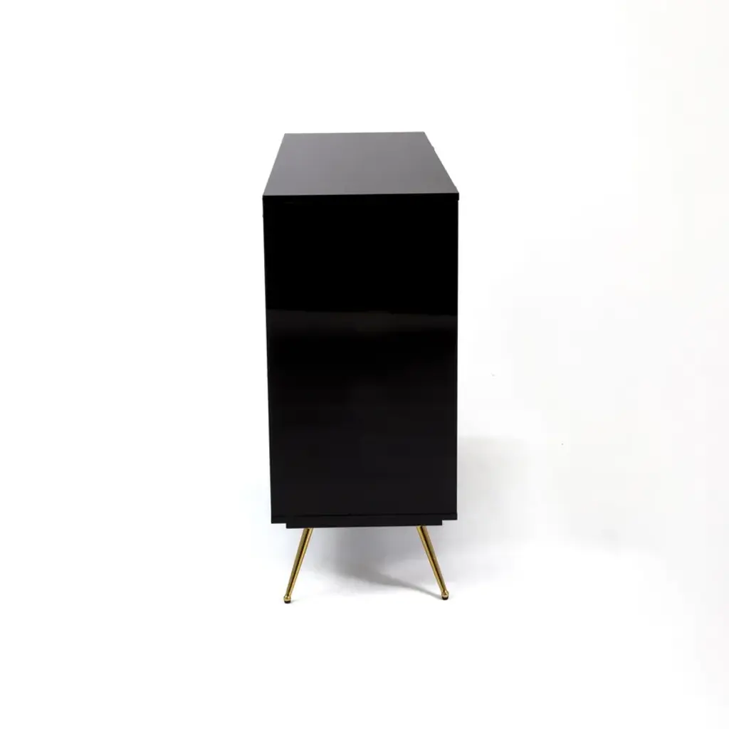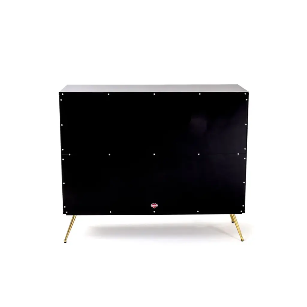 Lipsticks Black is an elegant chest of drawers with a mirror, featuring three drawers and made of MDF and glass, perfect for adding a touch of sophistication and functionality to your room.