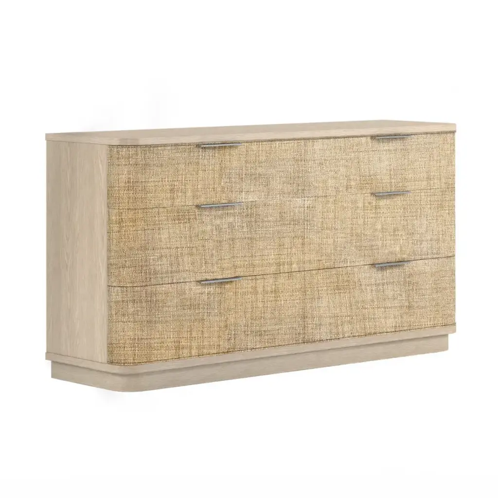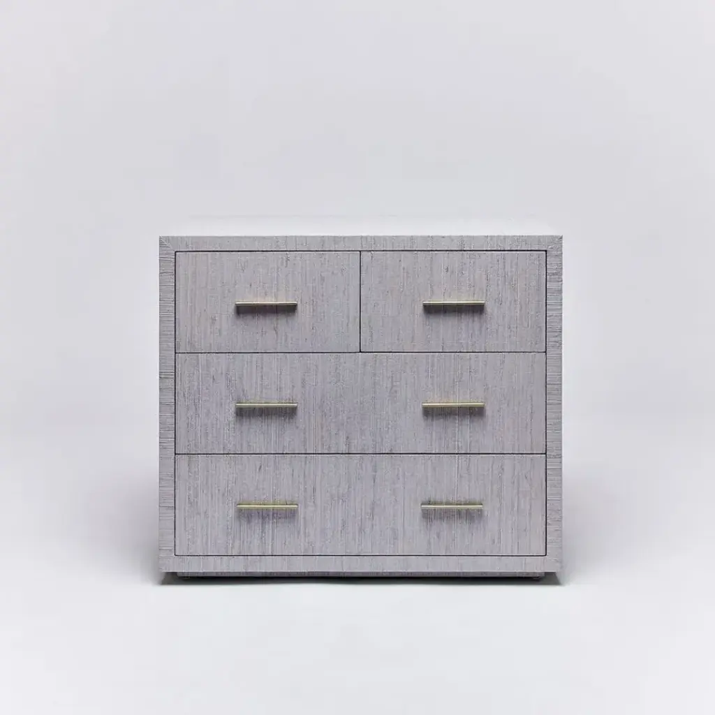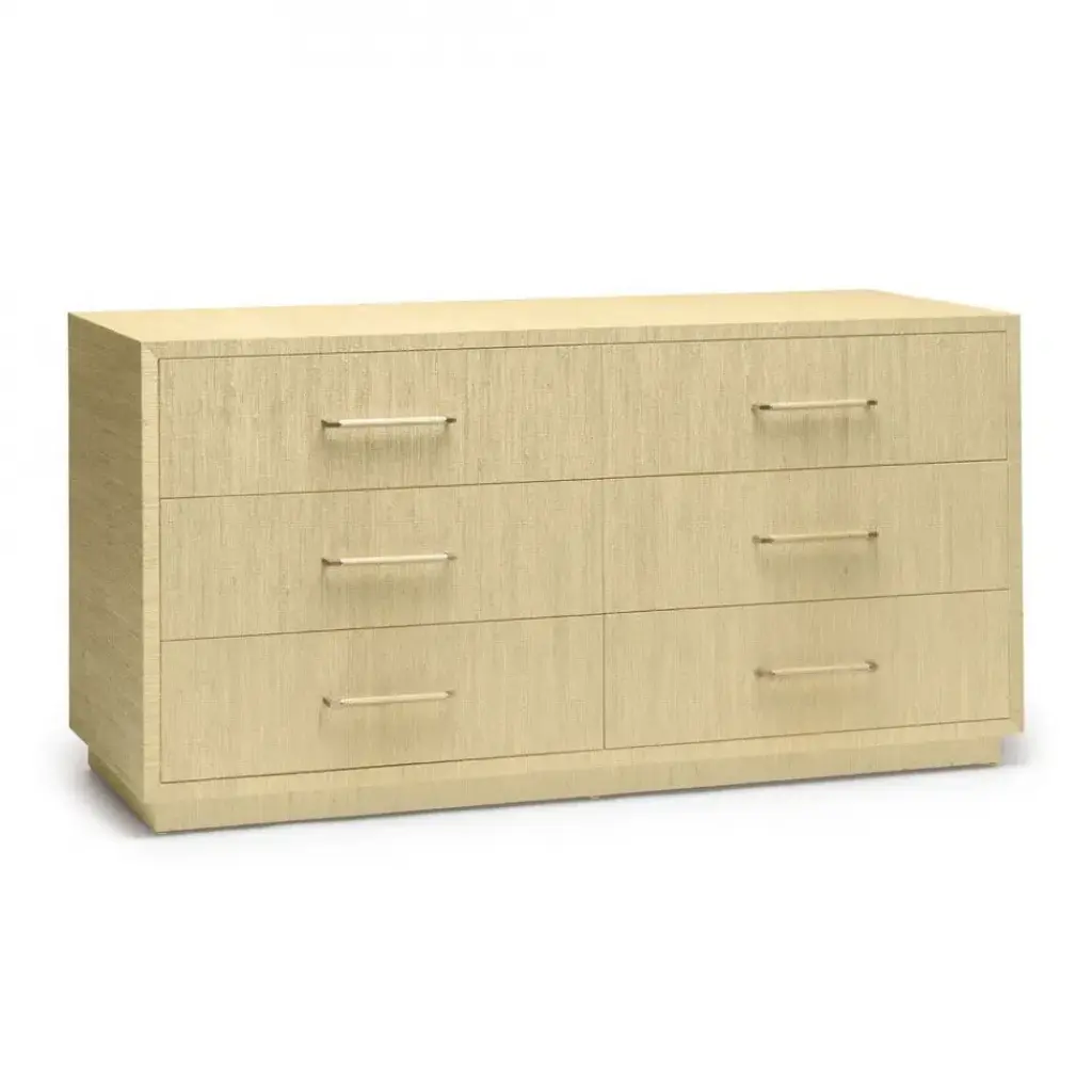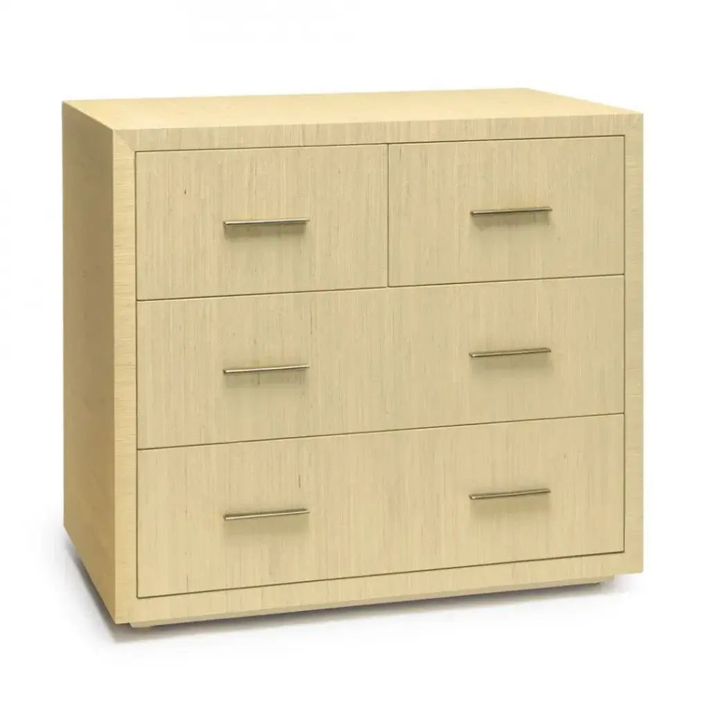Pairing iron hardware in a champagne silver finish with a mist sisal texture turns the Livia Occasional Chest into a natural, yet super-chic, statement. Sisal is made from hand-woven strands of natural fibers on a rice paper backing. The texture and coloration of all natural fibers will vary and will patina with time and use. Each piece will have its own charm, character and coloration and should be celebrated for its uniqueness.
