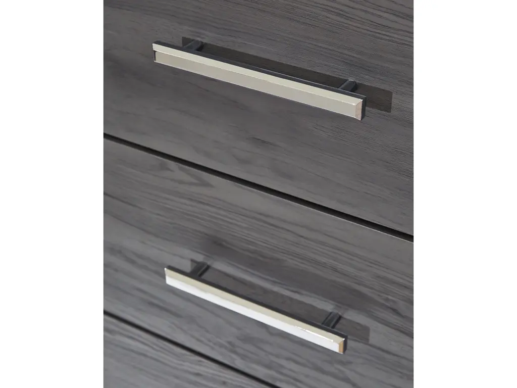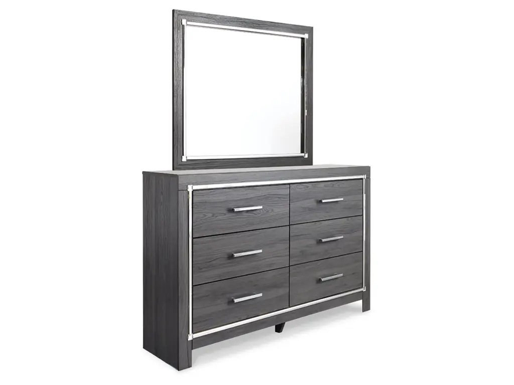 Reminiscent of Hollywood glamour of yesteryear, the Lodanna dresser and mirror set interprets luxury in a decidedly modern way. A dazzling gray finish and faceted chrome-tone accents enhance the star power. Six smooth-gliding drawers provide enough storage to appease your inner diva.