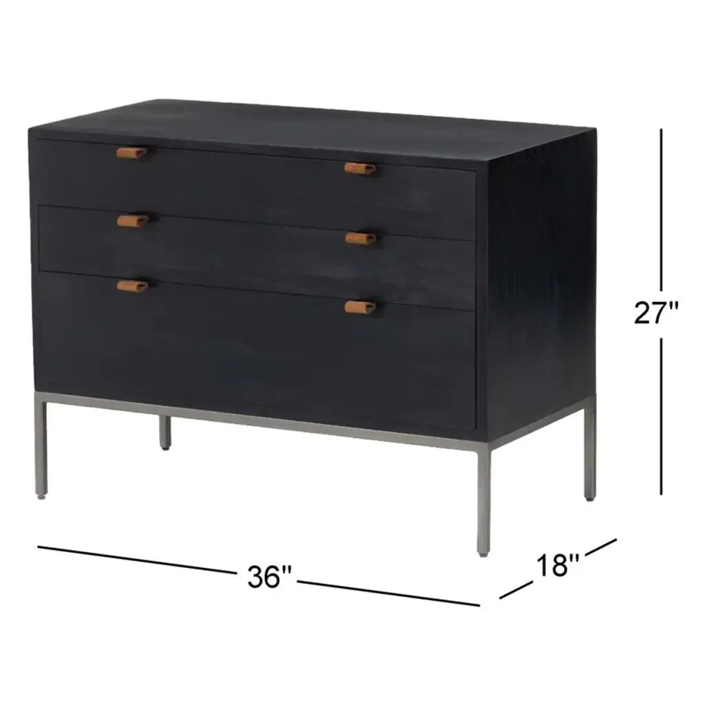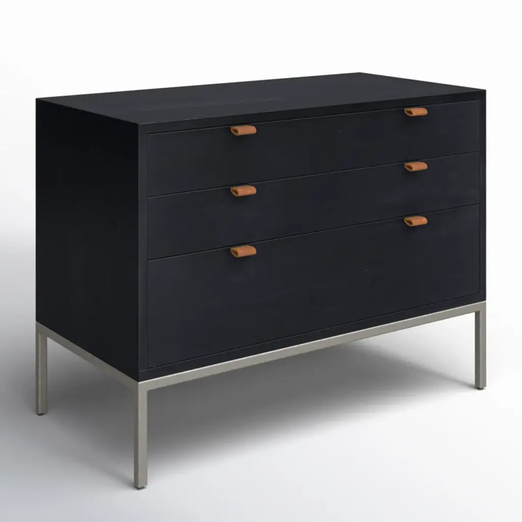 Simple style, inspired by midcentury decor. Made from poplar, a roomy three-drawer nightstand brings extra storage space to the bedside. Top-grain leather pulls add a textural finishing touch.