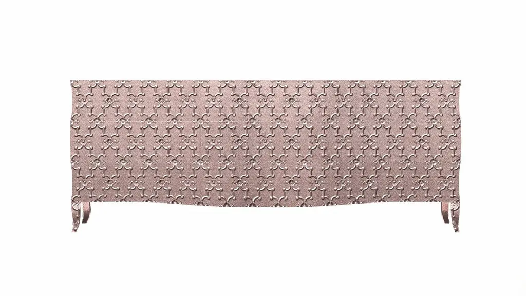 Renowned designer Paul Mathieu created this large dresser with 9 drawers with his interpretation of Fleur de Lis motif carved all over the piece just like the other two designs namely the Louise Semainier and Demi Louise Semainier which are part of the Louise Collection he created for Stephanie OdegardCrafted with utmost care and attention to detail, these Louis XVI Fleur De Lis are made to order and are available in twelve metal clad finishes, ensuring that you can choose the perfect one to match your individual style and taste. The use of high-quality materials and expert craftsmanship ensure that each Art Deco Louis XVI Fleur De Lis is not only beautiful but also a true piece of art.The curved legs and side arms of this Art Deco Louis XVI Fleur De Lis are hand carved from solid pieces of teak. Pattern makers trace and cut complex forms that will cover the chair in a skin of copper, white bronze, brass or antiqued white bronze The metal finishes will tarnish over time. Regular non-abrasive household metal polishes can be used to restore the original luster.Overall, if you're looking for a piece of furniture that combines luxury, comfort, and style, then the Art Deco Louis XVI Fleur De Lis is an excellent choice. With its distinctive curved profile and multiple finish options, this Chair set is sure to elevate the look of any room it is placed in, and be a beloved addition to your home for years to come.The images shown in this listing are shot in different lighting conditions and/or are 3D illustrations. We encourage our customers to please request a sample or a full sample set of 12 finishes so that they can experience the finish first hand. Louise Art Deco Dresser Fleur De Lis Louise Fine Hammered Copper by Paul MathieuSize- 84"x 18"x 33"HMaterials - Copper, Metal sheet, Teak, Wood, MetalTechniques: Hand-Crafted, Hand-Carved, Metal Work, Wood Work, Metal Wrapping, PolishedPlease note that moisture in air, sudden change in temperature and natural movement of wood over time causes the metal to wrinkle or bubble up. We use well seasoned, reclaimed teak and high quality marine grade MDF (wherever technically possible) to avoid and delay the mentioned changes. However a perfect stability of metal cannot be guaranteed. Please note that our smooth finish metal clad pieces will have some unavoidable tool marks. This is proof that everything is done by hand. The smooth finish will not come out like a machine made perfect surface and the master artisan will do their best to make it look as good/clean/stable/perfect as he possibly can.The antique white bronze finish is hand done by using an acidic chemical over the white bronze finish to recreate a natural patination. Like with the natural patination of silver, copper, or brass, the final result and color uniformity of the patina cannot be guaranteed. The goal of this finish is to achieve rainbow-like shades with dull, shiny, cloudy, and streaky patches to give an illusion of antiquing. Please note:None of our metal clad pieces are treated with a protective “finish” thus enabling the items to age naturally over time. We will of course polish them well before we pack them. a) Copper oxidizes faster than the other metals. In six to twelve months it will most likely lose its shine and will gradually turn to different shades of brown and/or green/blue. This aging process and its effect is referred to as verdigris. After a year the piece should not change much more. Copper does not rust, but does require periodic cleaning in order to retain its original shine if that the preferred option. ('BRASSO' or any known copper polish can be used to polish copper).b) Brass retains its shine for far longer than others, but will tarnish if not cleaned on occasion. ('BRASSO' is made to polish brass).c) White bronze, has the least tendency to show age or tarnish. If kept in a controlled climate, this metal will hold its shine for years. It can be cleaned with a cleanser and polished with a cloth. d) The antiqued white bronze finish will react with the natural elements the fastest in the beginning but it too will stop reacting and will settle down in a stable state like copper after 6-12 months. Since it is already antiqued and looked like it is tarnished, as described in an earlier message, this fast reaction will not change the over all look. In that way this surface is most forgiving. The images shown in this listing are shot in different lighting conditions and/or are 3D illustrations. We encourage our customers to please request a sample or a full sample set of 12 finishes so that they can experience the finish first hand.