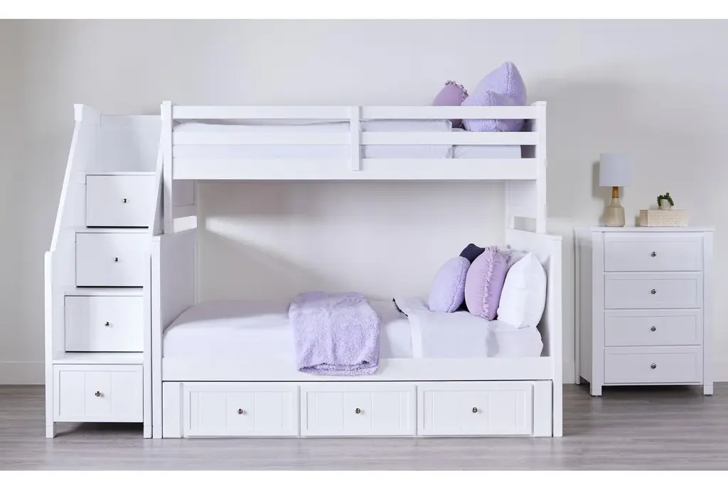 The Luca White Wood 4-Drawer Chest offers a contemporary style that complements any bedroom or kids' room. Crafted from solid pine and MDF, this chest is both durable and stylish. With its neutral white color, this piece fits seamlessly into various decor themes.