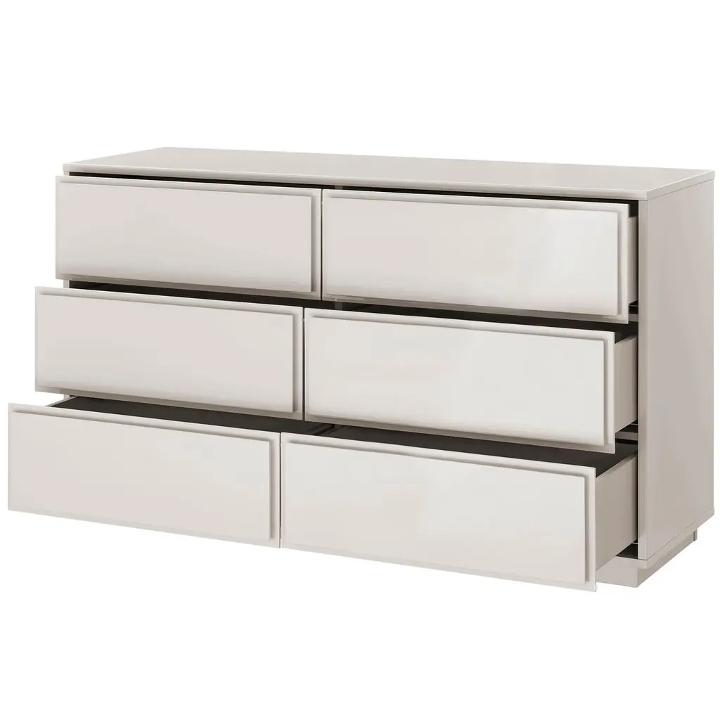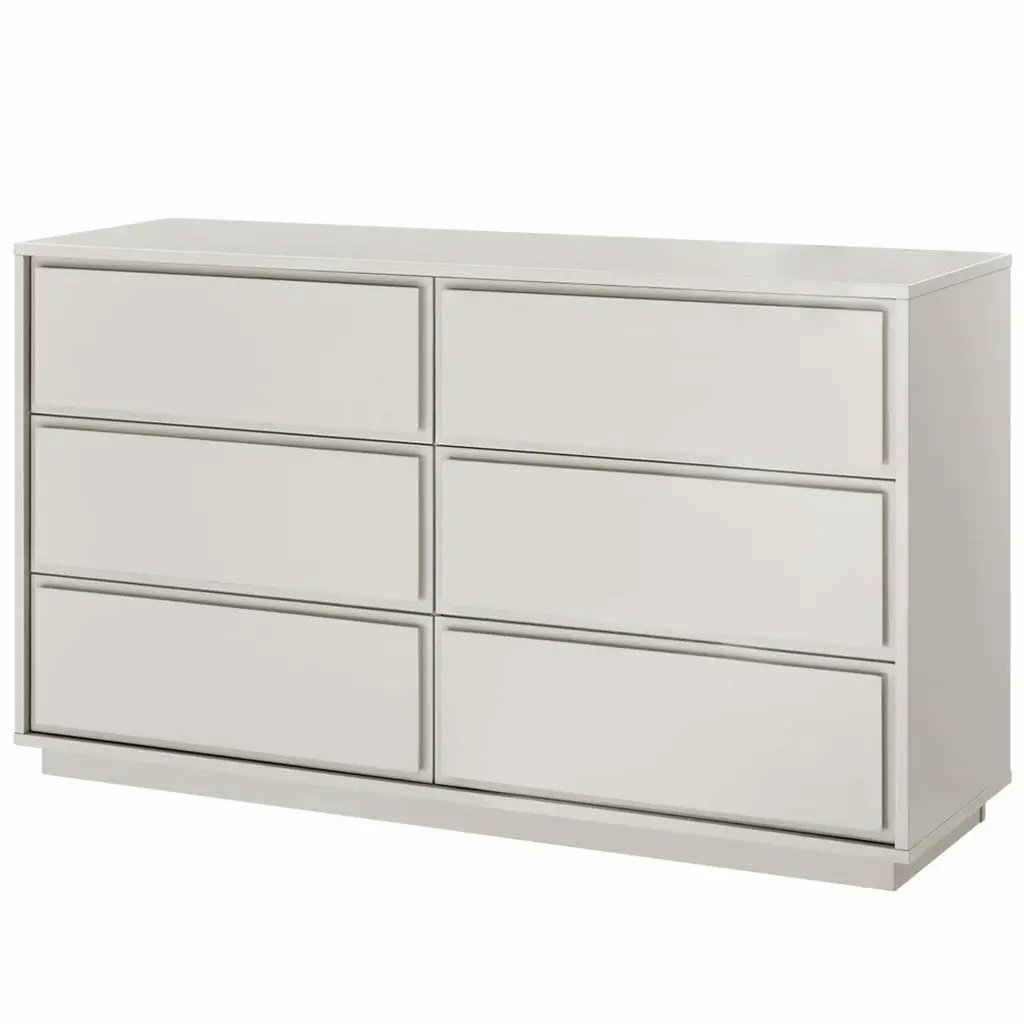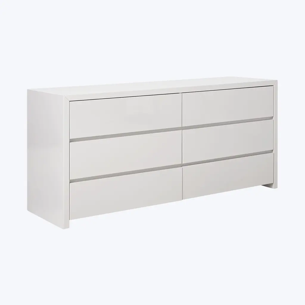 Simple, sleek, and functional- These are all hallmarks of the Lumiera collection. With clean lines and 6 amply sized push open drawers, the Lumiera Dresser maximizes storage while maintaining a minimalist aesthetic.