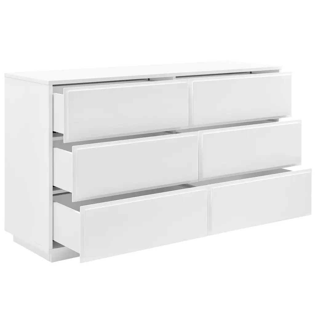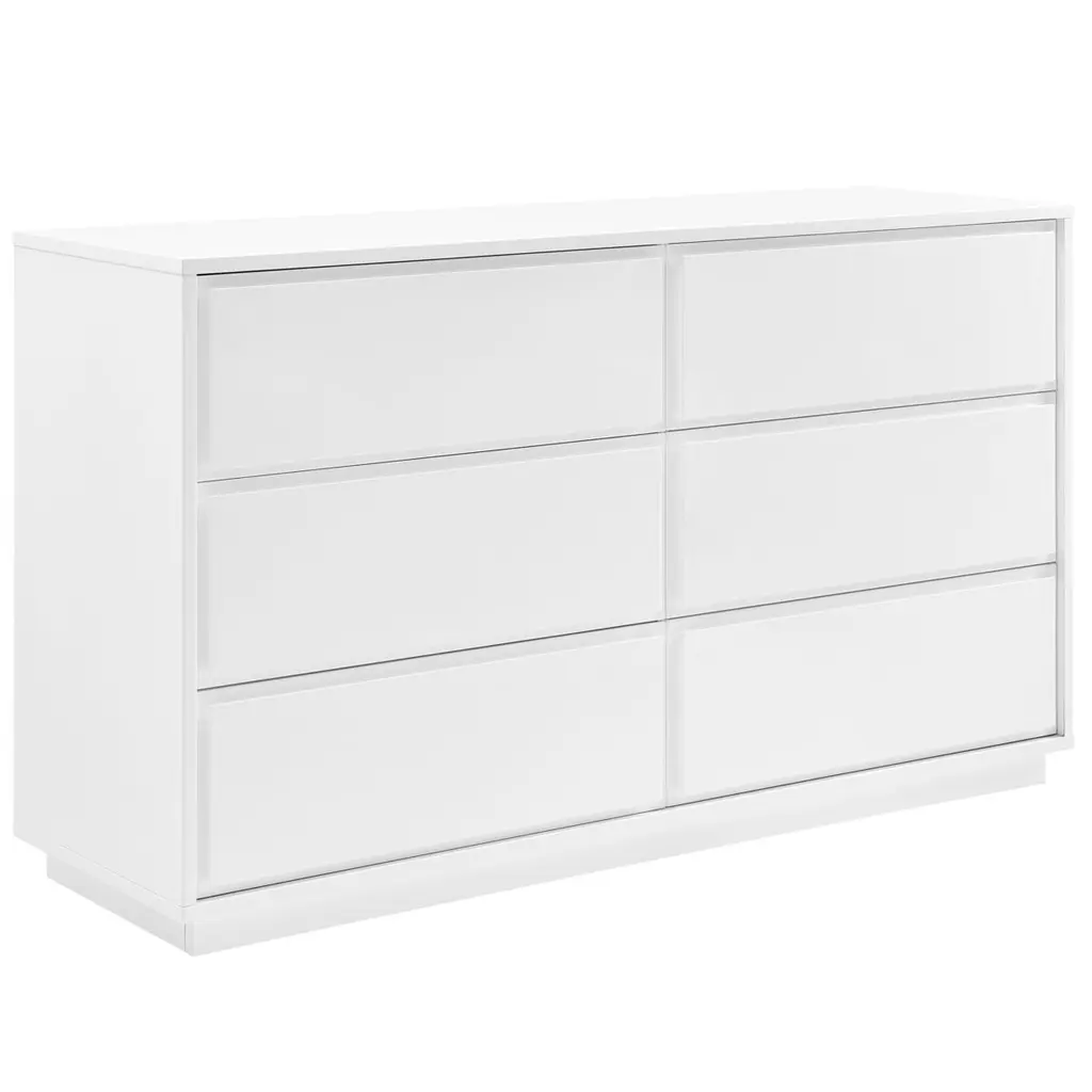 Simple, sleek, and functional- These are all hallmarks of the Lumiera collection. With clean lines and 6 amply sized push open drawers, the Lumiera Dresser maximizes storage while maintaining a minimalist aesthetic.