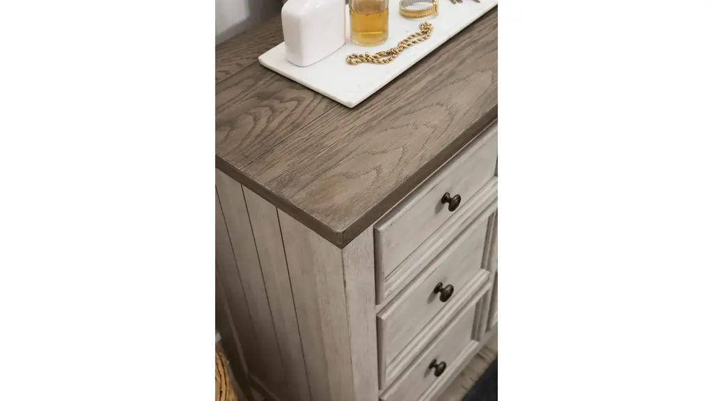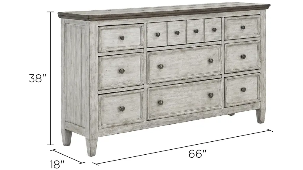 Enjoy the simple life with the Magnolia Park Dresser. This piece has a stunning two-tone look and plenty of storage. And, with felt-lined and aromatic cedar-lined drawer, you'll fall in love with the look and feel of your bedroom.