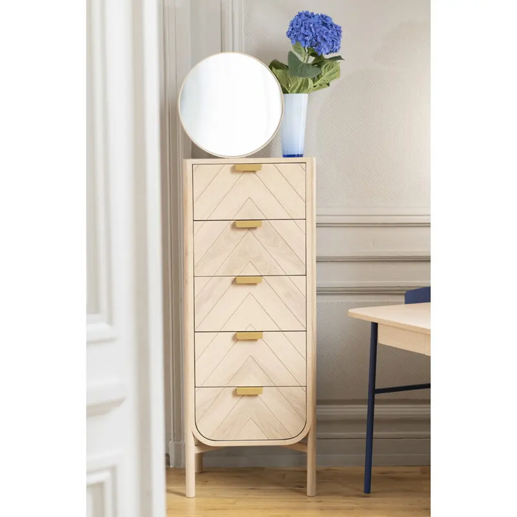 Hartô’s Marius chest of drawers, designed by Pierre-François Dubois, is an elegant piece of storage furniture suitable for a variety of spaces. Inspired by nautical life, the shape of the chest carries references to a ship's hull while the sliding doors' decorations resemble its sails. The narrow, tall chest of drawers brings additional storage space to your entrance, bedroom or living room.