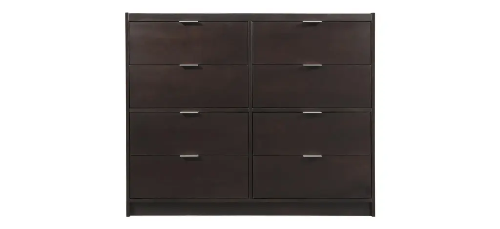 This Matsdotter 8 Drawer Dresser is a practical and good looking accent for your bedroom storage and organizational needs. This horizontal double dresser has column style drawers and a wide top surface area to help you with your daily dressing essentials. Loaded with capacity, this piece is equipped with eight easy open drawers for practical and good looking clothing storage. Its a high quality piece, made from high grade manufactured wood.