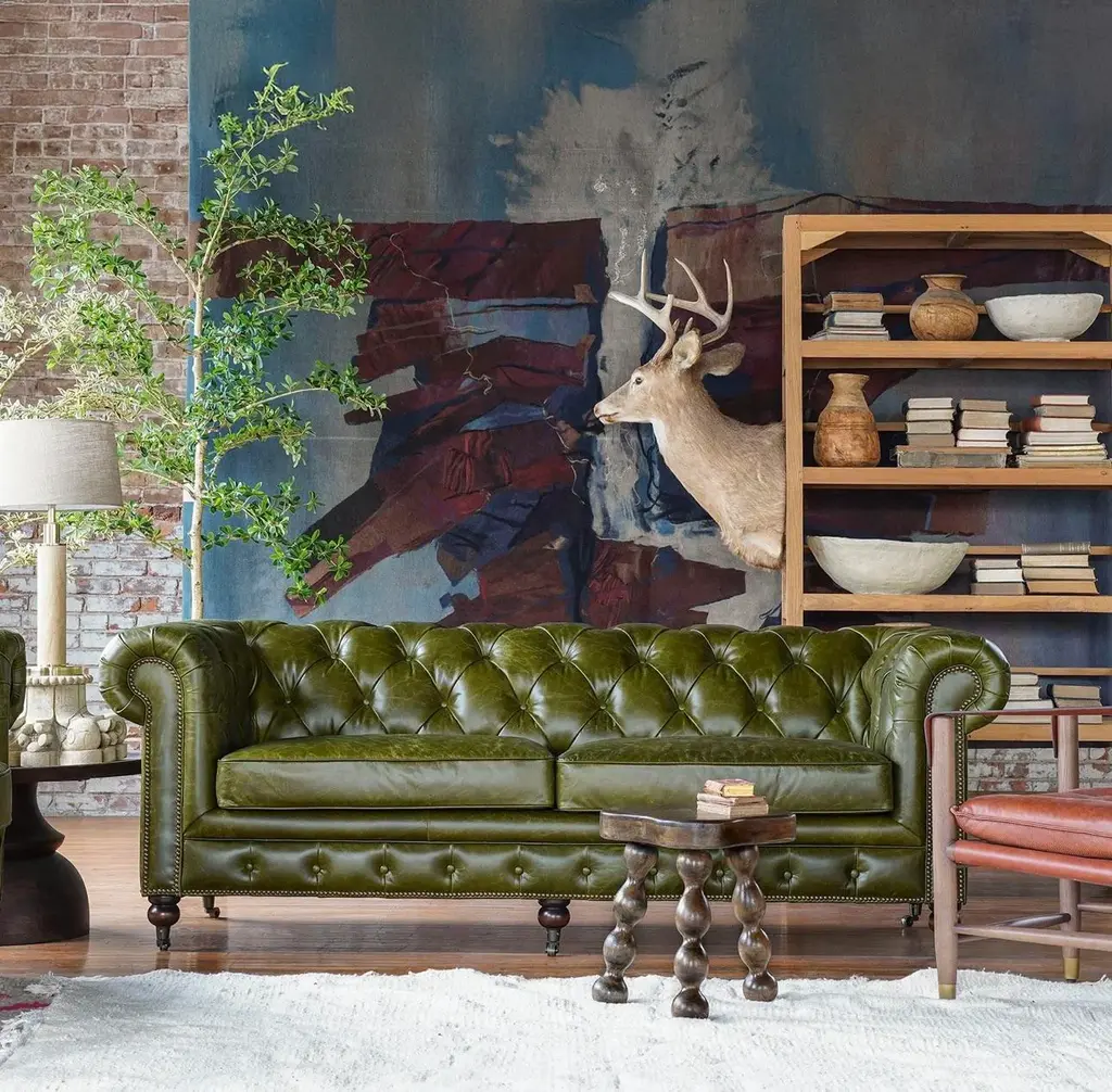 Matthew Izzo Home The Churchill Great Britain, Green Chesterfield Sofa 87”