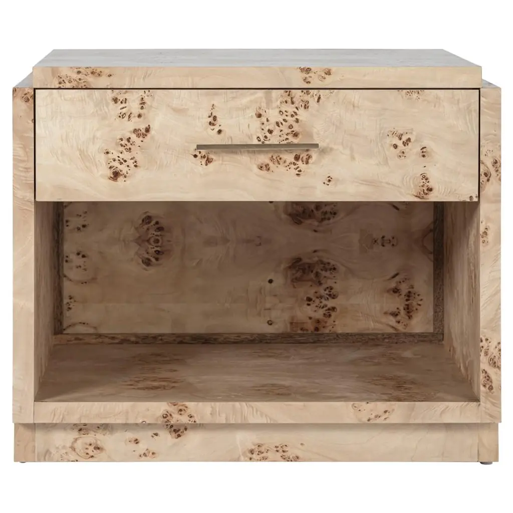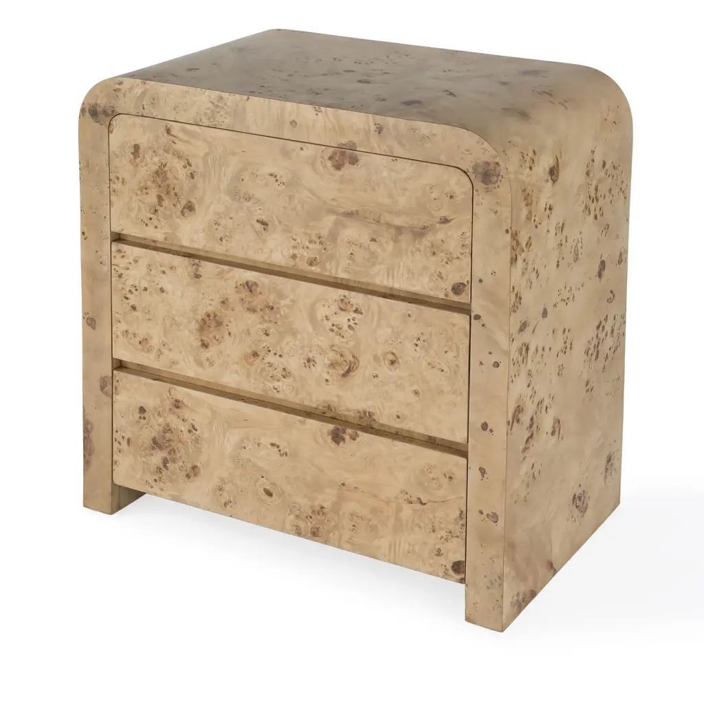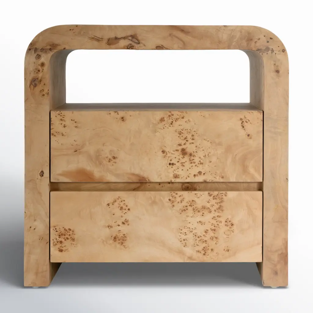 Discover the allure of the Maximilian 2 Drawer Chest, a masterpiece that captures the essence of natural beauty and functional elegance. This accent chest is adorned with mesmerizing Marisella that dance within the natural grains, creating a visual symphony that enchants the eye. Its two spacious drawers offer ample storage while highlighting the chest's geometric accents and warm tones. The Maximilian 2 Drawer Chest is not just a piece of furniture; it's a romantic ode to nature's artistry, inviting you to indulge in its timeless charm and sophistication.