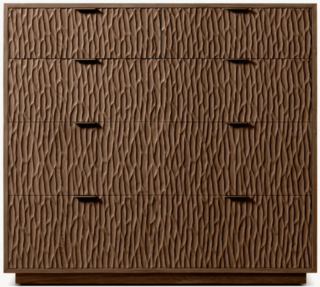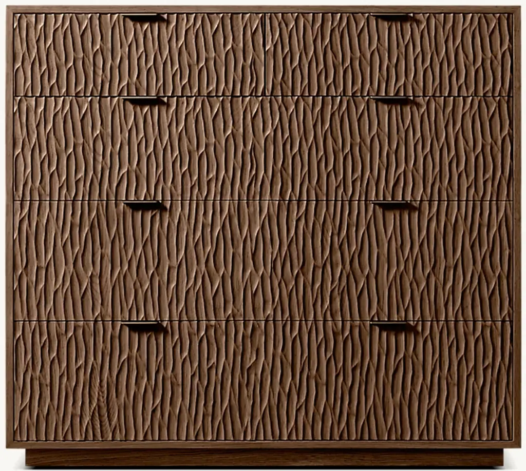 Impeccably executed in American white oak, Melbourne by Harrison and Nicholas Condos celebrates the art of handcraftsmanship. Intricately carved drawer fronts have a rich, undulating texture that is juxtaposed with the sleek geometric frame, for a rhythmic interplay of fluid curves, straight lines and crisp angles. SHOP THE ENTIRE COLLECTION