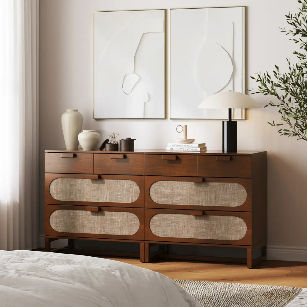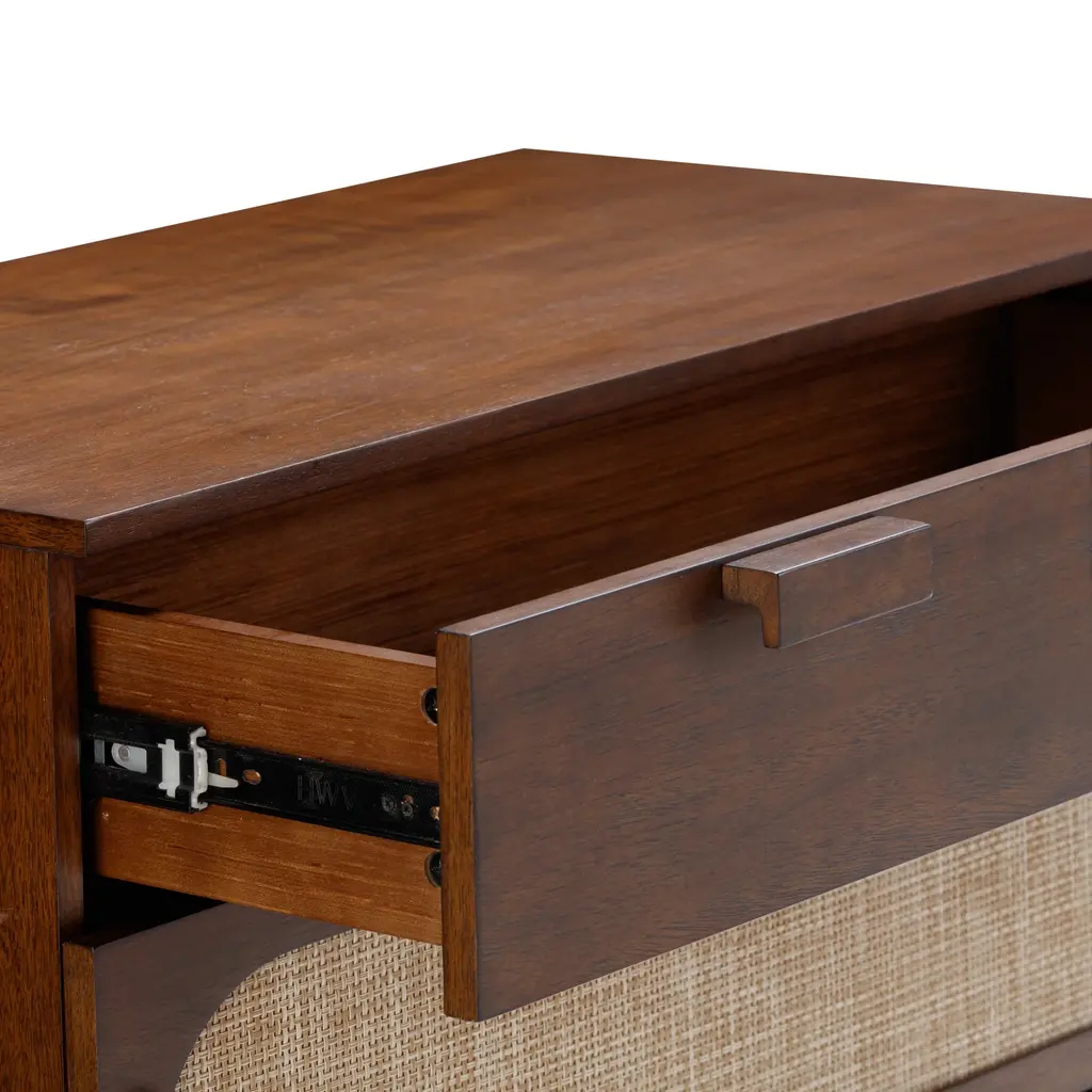 Mid-Century Rattan 3-Drawer Dressers Dark Acacia (Set Of 2)