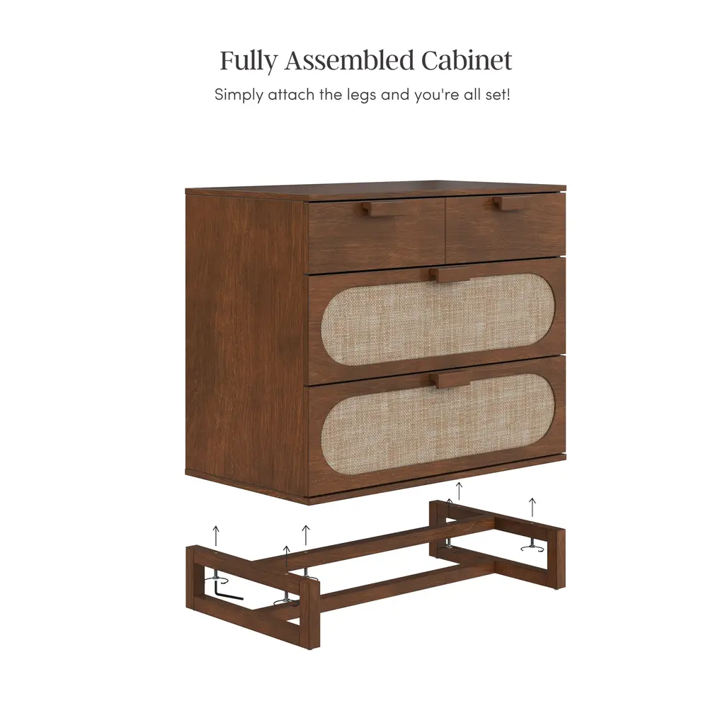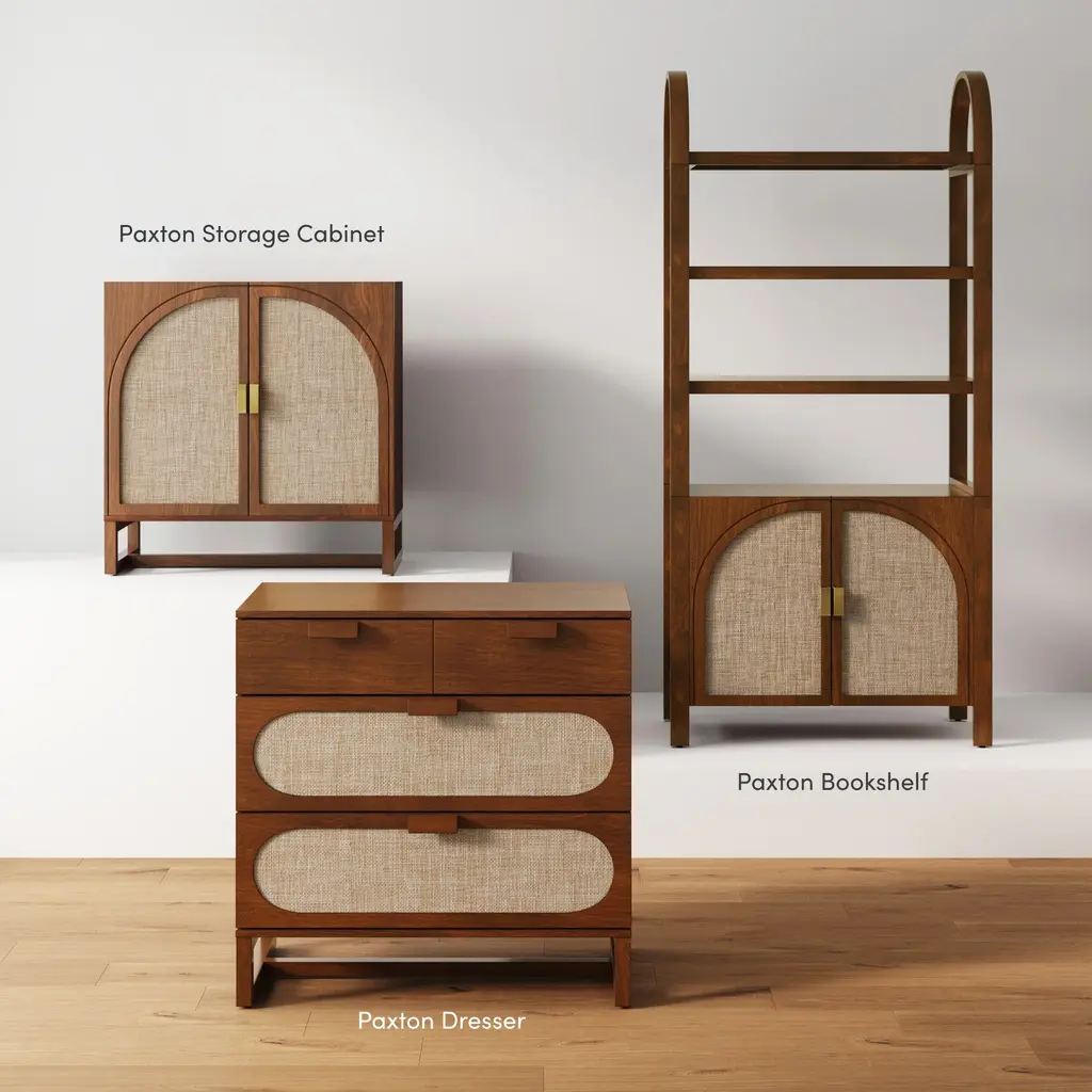 Our new Paxton Dresser is the perfect blend of style and functionality! Featuring solid wood drawer pulls and a sturdy base, it’s built to last. The three drawers glide smoothly on metal slides, with the top left and right drawers opening as a single, spacious compartment for extra convenience. The faux rattan inlays add a touch of texture and warmth, while the natural wood construction means each piece is one-of-a-kind, with unique variations in color and grain. It’s a beautiful and functional addition to any room!