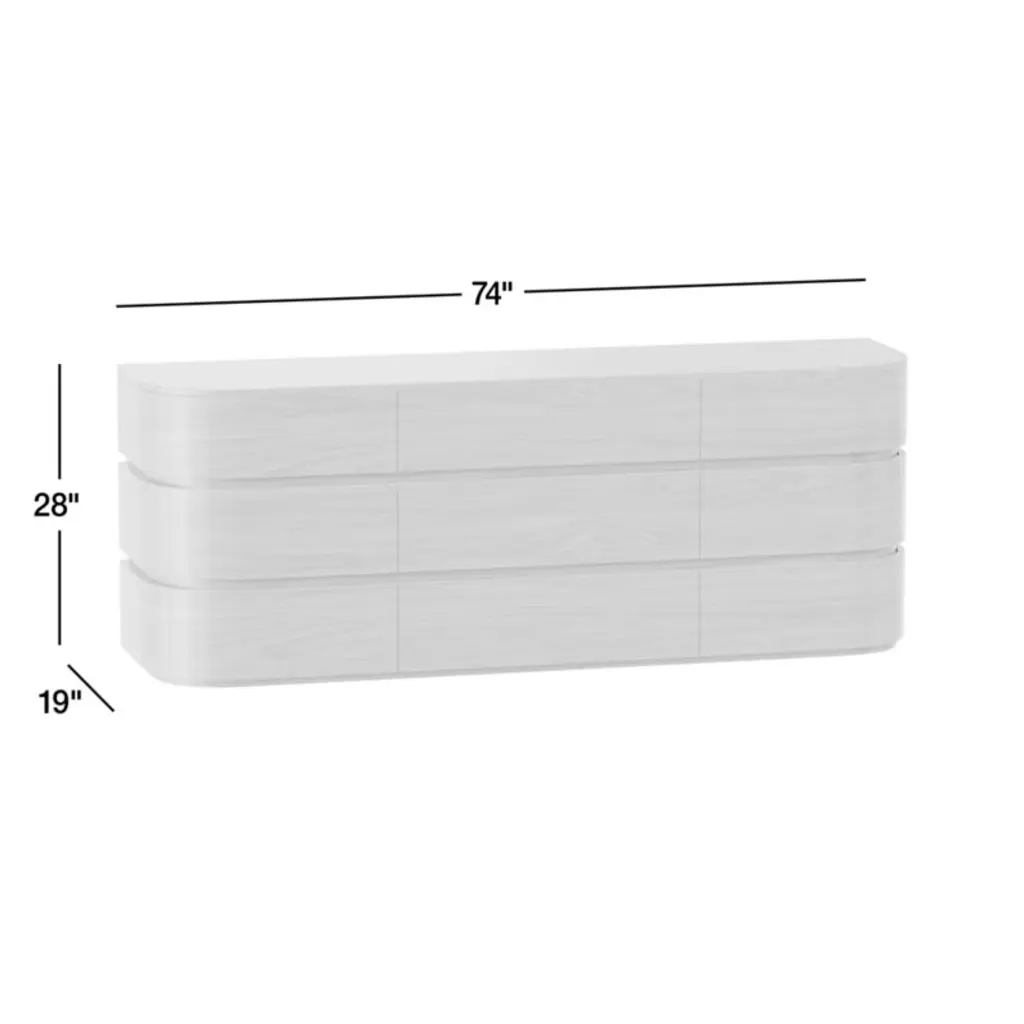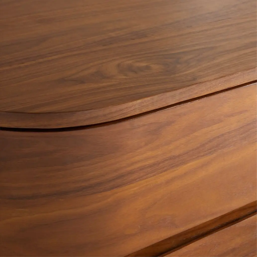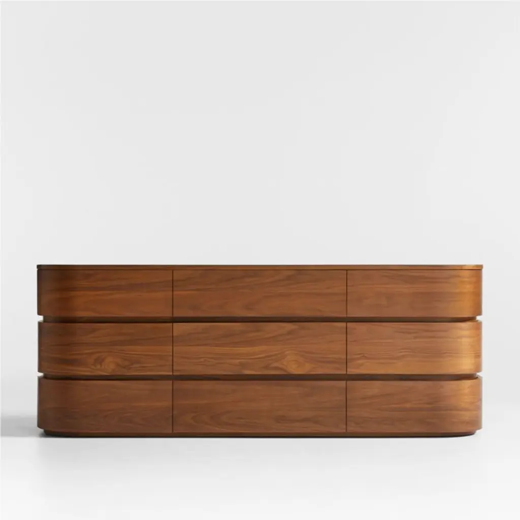 Milano looks to Italian design for its low profile and modern way with wood. Walnut veneer shapes the dresser with extravagantly curved corners and seamlessly integrated drawers that put all the focus on the beautiful wood grain. Recessed accents divide the dresser horizontally into three sections, lending linear interest as well as carving out the drawers with hidden finger pulls. A stunning addition to your bedroom, the dresser is part of our exclusive Milano bedroom collection.By choosing FSC®-certified furniture, you are supporting responsible management of the world's forests.