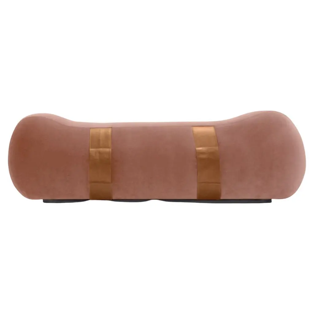 New to the Marie Burgos collection is Milo Bench, complimenting the Milo Bean.The design includes the same easy-to-grab leather handles for easy mobility. The Milo Bench can be used in an entrance hall, as a footstool, and as a colorful 48” two-seat in a playroom. The Milo bench is available in a variety of sumptuous velvet fabrics or COM.