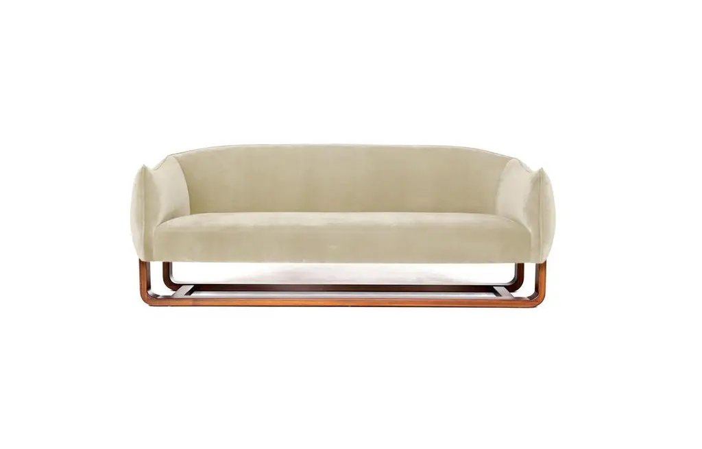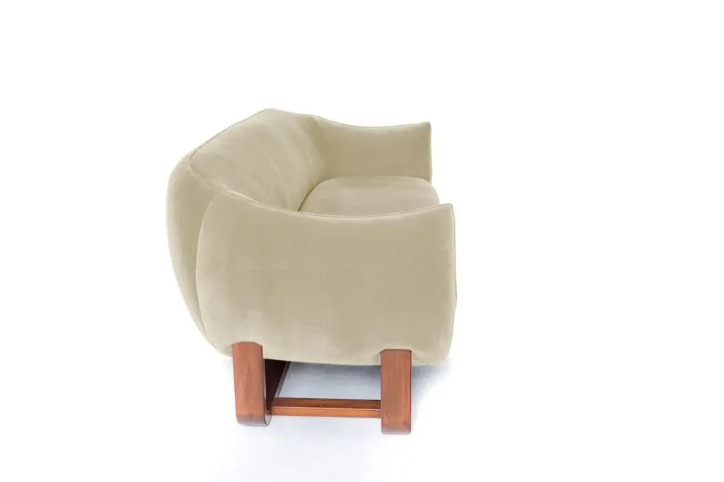 Designer Marie Burgos has expanded on the design concept for her acclaimed Milo lounge chair and created the newly introduced Milo sofa. She uses a molded wooden frame to support the luxuriously comfortable seating that is covered in any of a wide selection of fabrics, including the red velvet shown here. The tailored contemporary style is designed to compliment room settings in virtually any style from traditional to minimalist modern.Structure: Handcrafted wooden frame Finish: Variety of Fabrics with leather handle.COM available.