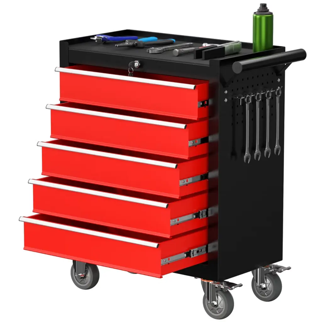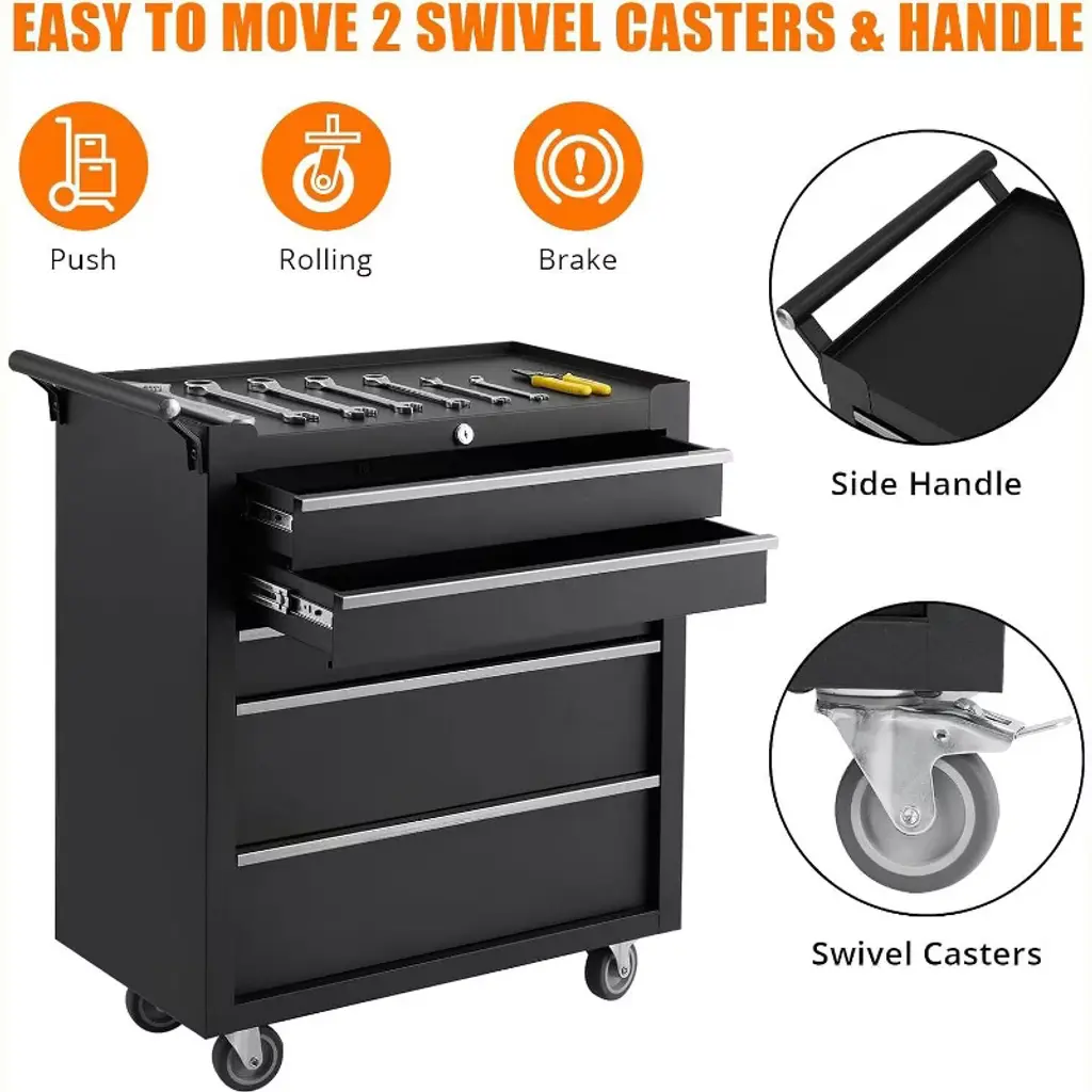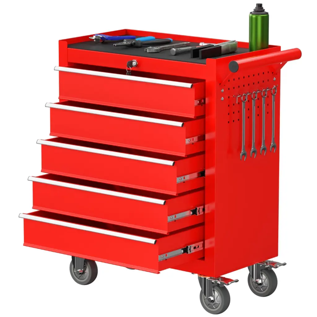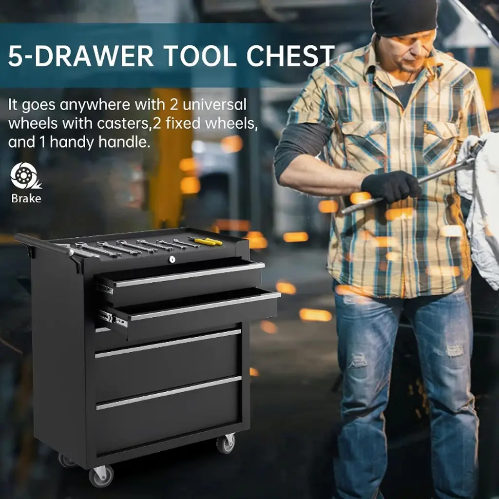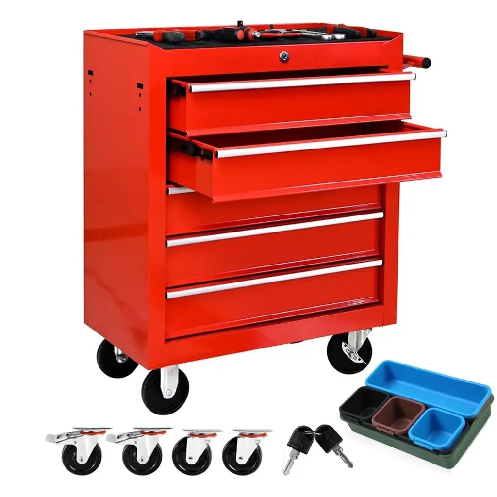 Mobile 5-drawer Tool Chest With Wheels, Locking Tool Storage Cabinet, Portable Utility Cabinet, Multipurpose Garage Workshop Organization
