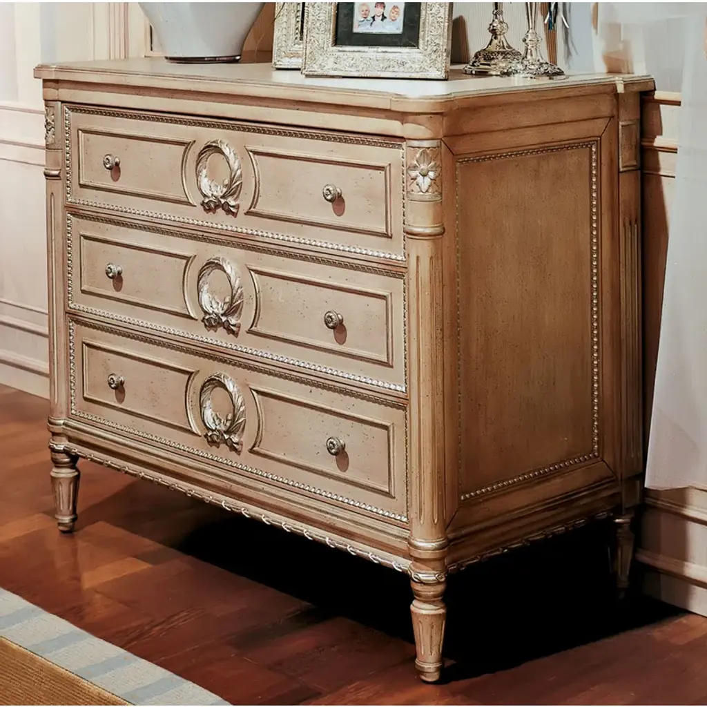 Honoring the craftsmanship and quality of the past, this gorgeous furniture piece is shure to become a modern-day heirloom. Hand-crafted in small quantities, the quality of manufacture, finish, proportion and attention to detail are reminiscent of generations past when anything less would not be tolerated. Solid brass hardware, dovetailed drawers and hand rubbed finishes are just a few of the many benefits of furniture by MODERN HISTORY. Classic, timeless, well-styled and quality is the foundation of exceptional design and the foundation for the furniture of MODERN HISTORY . Built on the ongoing family tradition of Yorkshire House, MODERN HISTORY is a fresh and exciting approach to Fine Furniture and High Design. Features: Hand Dovetailed Drawers Care Instructions: Warm Soap & Water; Dry Please note: Accessories pictured are not included with purchase