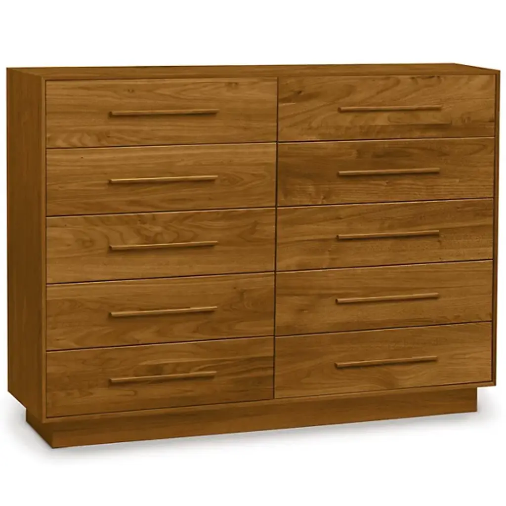 Functional design emboldened by natural style. Built with tremendous care and technique, the Copeland Furniture Moduluxe 10 Drawer Dresser uses superior materials to deliver unparalleled results. Solid Hardwood meets two important needs as it provides excellent durability while giving the piece an incredibly appealing aesthetic. Supported by a flat base made of the same Hardwood, the dresser’s uniformity only strengthens the natural charm. With full extension in each of the 10 drawers, the unit maximizes usable space within. The piece uses every inch of its frame to present attractive details while also making better use of your space, changing the look and layout of your bedroom.