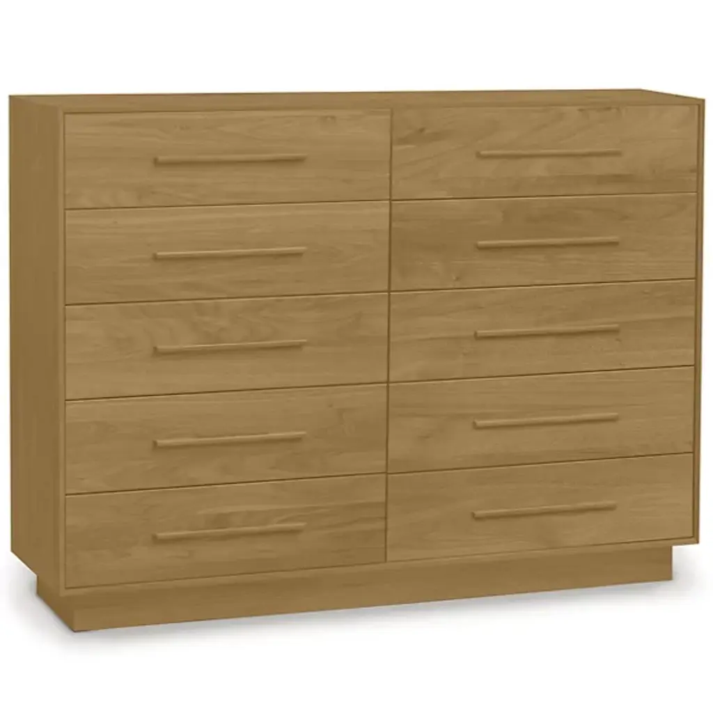 Functional design emboldened by natural style. Built with tremendous care and technique, the Copeland Furniture Moduluxe 10 Drawer Dresser uses superior materials to deliver unparalleled results. Solid Hardwood meets two important needs as it provides excellent durability while giving the piece an incredibly appealing aesthetic. Supported by a flat base made of the same Hardwood, the dresser’s uniformity only strengthens the natural charm. With full extension in each of the 10 drawers, the unit maximizes usable space within. The piece uses every inch of its frame to present attractive details while also making better use of your space, changing the look and layout of your bedroom.