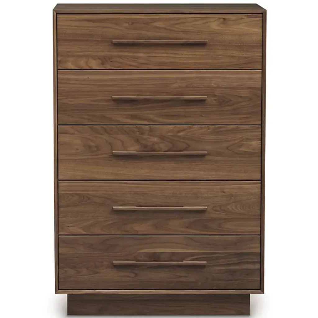 Style, sophistication and space. With the Copeland Furniture Moduluxe 5 Drawer Dresser - Wide, you get a lot more than just a useful piece of furniture. Expertly crafted in Vermont and made from Solid Hardwood, the design accounts for every important detail a dresser might present. The drawers offer full extension and are self-closing, while the straight pull handles blend seamlessly with the face of the dresser. The structure has the size to accommodate plenty of clothing and possessions, while the reserved base enables the piece to fit into a cramped space without trouble. Hardwood provides useful durability, meaning this beautiful piece will continue to handle its duties for years to come.
