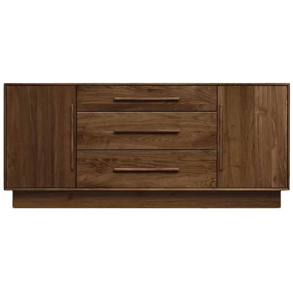 Give your bedroom the convenient storage and modern style it needs with the Copeland Furniture Moduluxe 29-Inch 3 Center Drawer/2 Door Sideboard. It features two single cabinet spaces (with an adjustable shelf each) on either side of 3 drawers. It is a large piece that is just as well-suited a stand-alone piece as it is a component of a complete 29-Inch Moduluxe system.