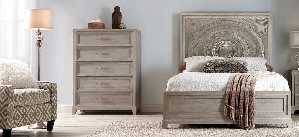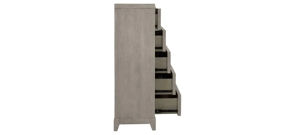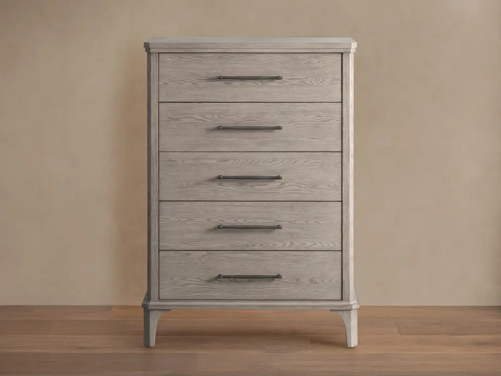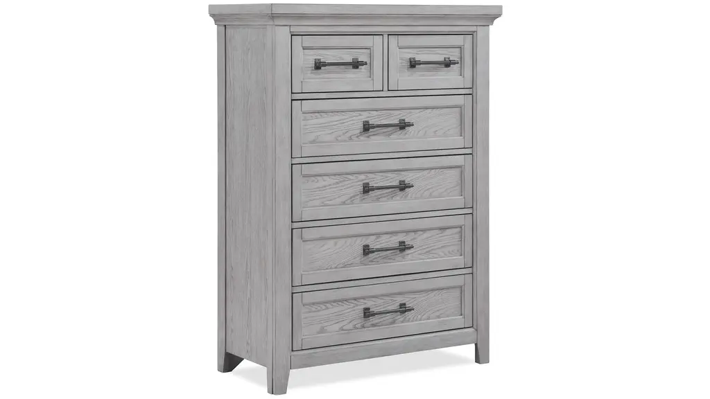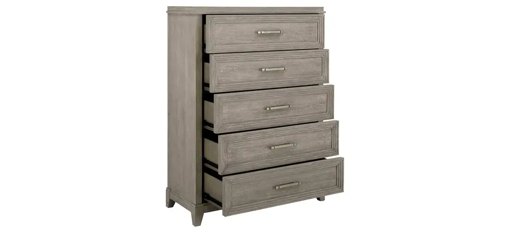 Love your bedroom when you're awake and sleeping with the Montara bedroom chest. The light split-oak veneers lend a relaxed and refined look, while nickel-finished drawer pulls are easy on the eye. Five drawers, the top of which is felt-lined, provide ample storage.