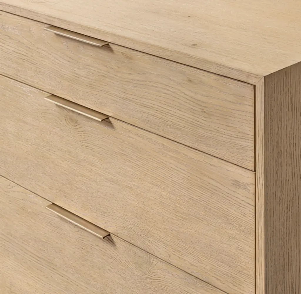 A seamless union of rusticity and refinement, Montecito from the Van Thiels celebrates the enduring spirit of minimalist design. Handcrafted of wire-brushed American white oak, the silhouette's crisp lines, mitered edging and slender metal hardware are an elegant juxtaposition to the wood's distinctive knots and pronounced grain. SHOP THE ENTIRE COLLECTION