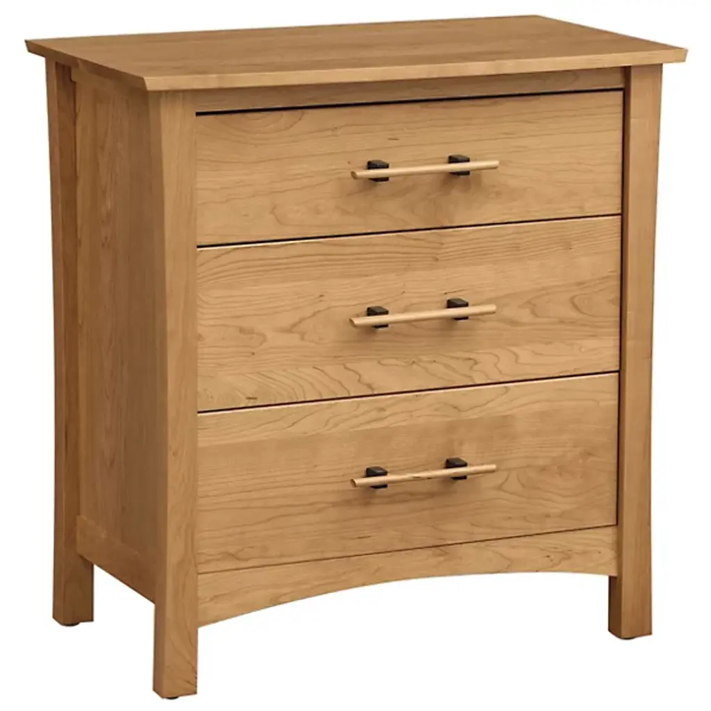 Storage space with a strong elegance. While the curves and lines of the Copeland Furniture Monterey 3 Drawer Dresser present a classy aesthetic, the well-built frame makes this a forceful fixture. Solid Cherry Hardwood gives the dresser enduring durability, carefully crafted to withstand a long life full of opening and closing. Innovative drawer glides help with that longevity, improving the dresser’s function and protecting the material. With 3 compartments in the piece’s medium frame, there’s plenty of storage space for whatever needs stowing. From the angled legs to the smooth surface atop the dresser, every element has natural aesthetic appeal and the sturdiness to withstand an existence of utility.