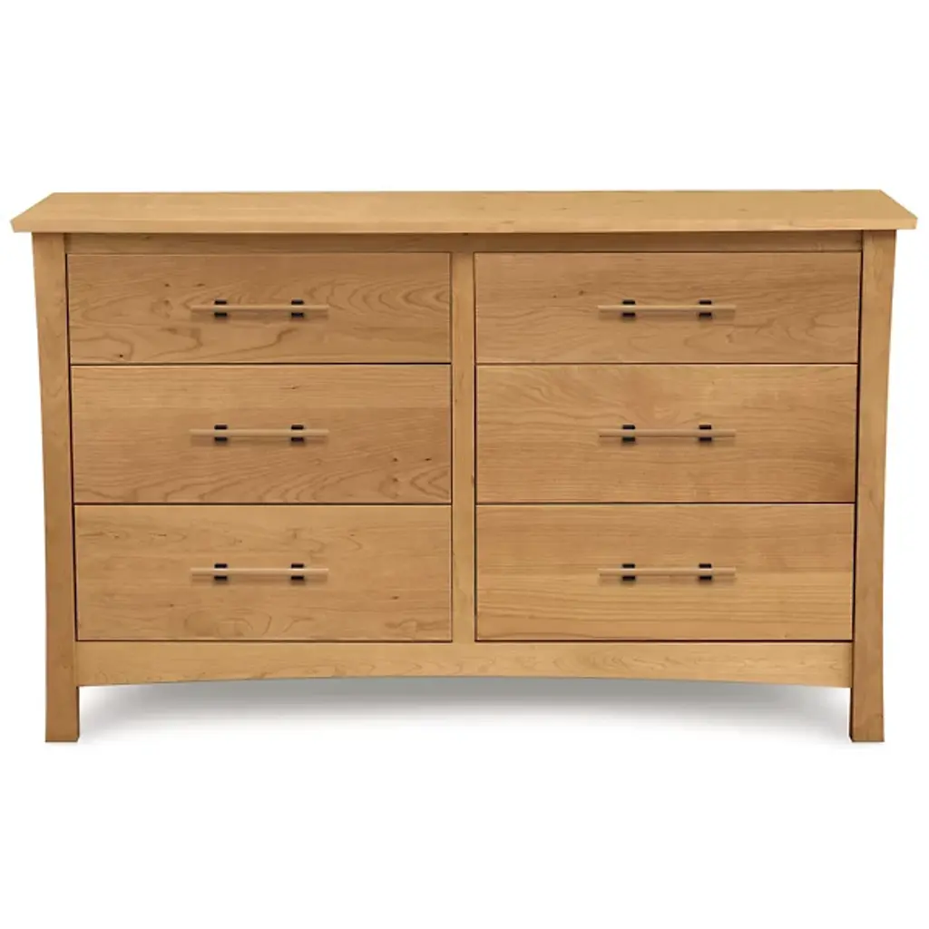 Excellent storage that leaves a stylish impression. Handcrafted with the utmost care, the Copeland Furniture Monterey 6 Drawer Dresser helps with organization while delivering an equally welcome fashionable upgrade. From the symmetrical face to the narrow legs, this Solid Cherry Hardwood frame carries vintage grace and appeal. Made with a combination of traditional and modern crafting techniques, the dresser has an allure that’s hard to find in contemporary style. Beyond its good looks, the unit features 6 spacious drawers with useful and protective gliding mechanisms. Between the open surface and the bountiful space within, this magnificent structure does more than enough to vastly improve your bedroom storage.