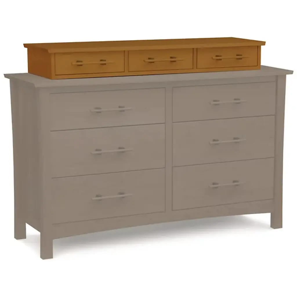 Storage made to accommodate your accessories. You have a unique collection of possessions, and the Copeland Furniture Monterey Accessory Case for Dresser acknowledges that. In a reserved but wide frame, perfectly sized drawers appear on top of an existing dresser, keeping smaller items within reach of those which need larger compartments. Made to match an accompanying Monterey unit, the accessory case features beautiful Solid Cherry Hardwood and exceptional drawer glides. While the design presents a relatively understated piece, you can’t overstate the usefulness of this organizational case. A fashionable unit in which to store your fashionable items, this piece makes a perfect addition to an existing display.