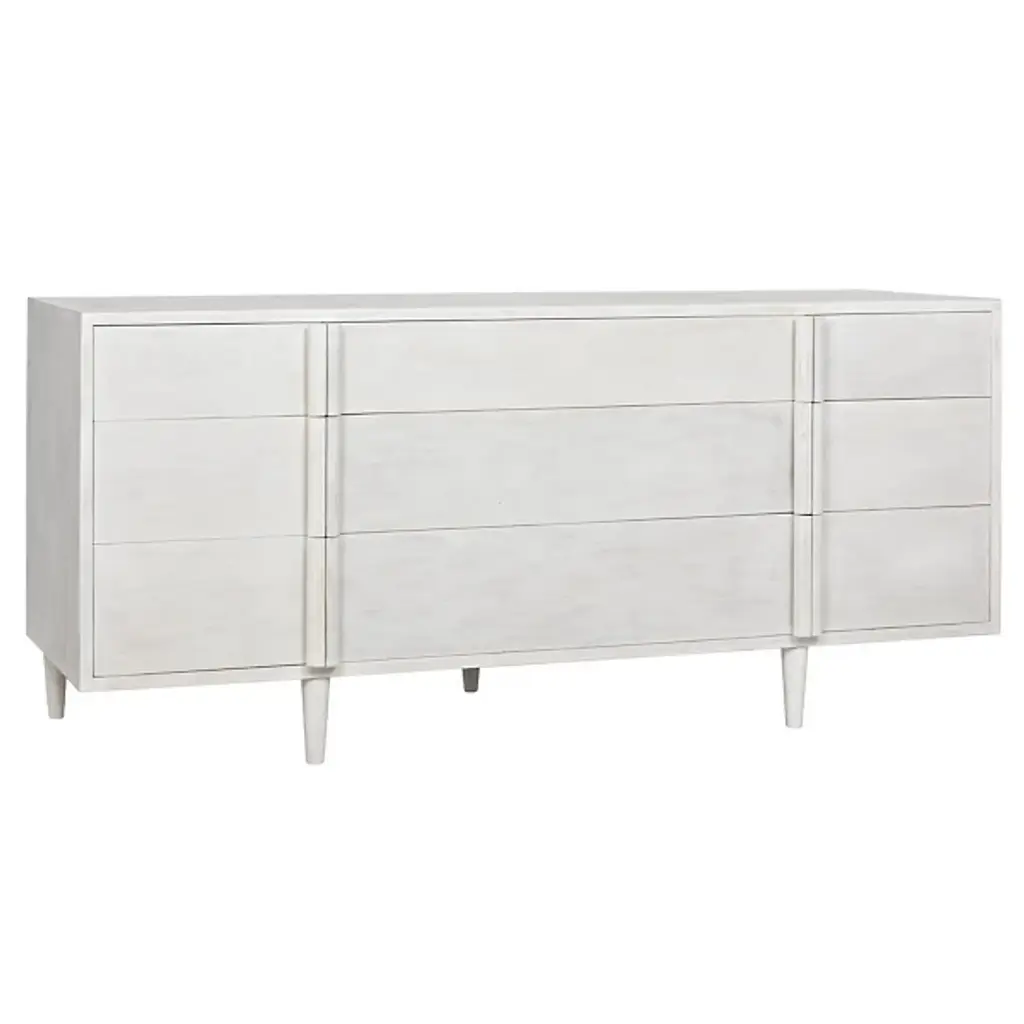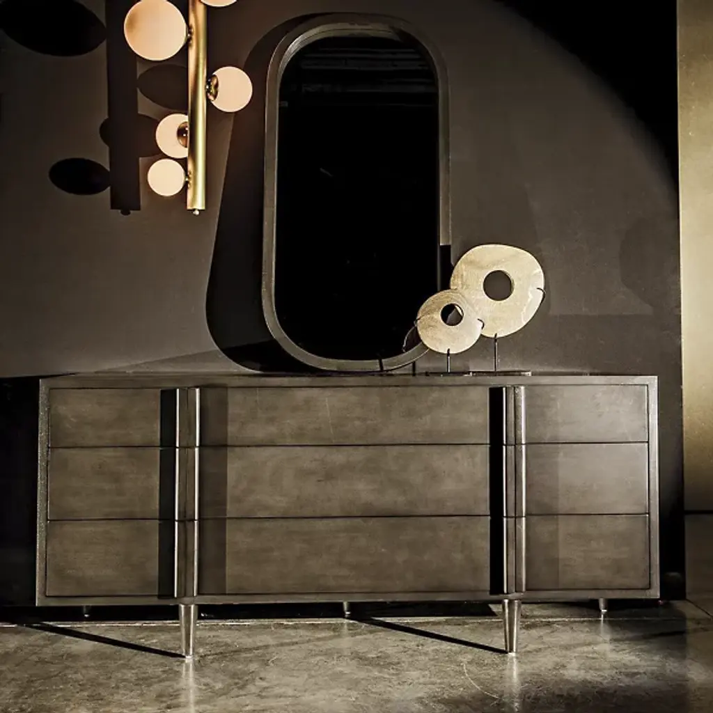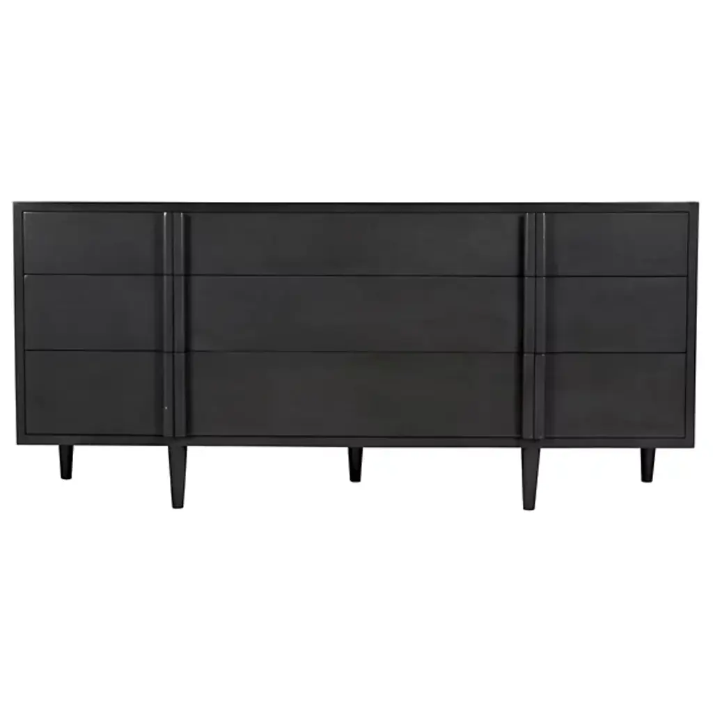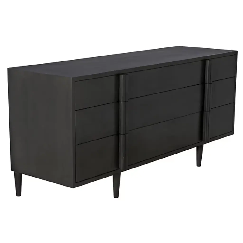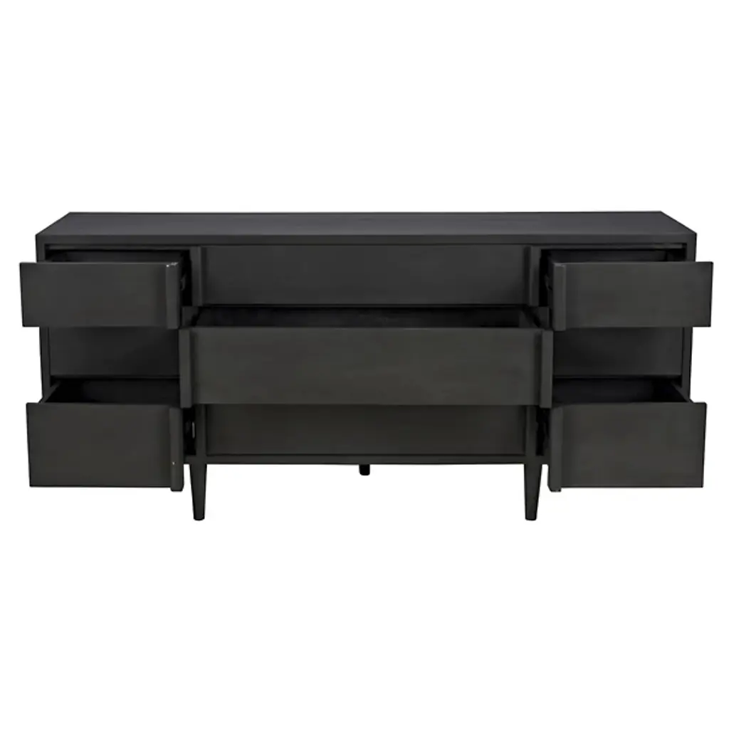 The Morton 9 Drawer Dresser from Noir combines bold, clean lines with sophisticated design, demonstrating that storage can be functional and stylish. Its tapered legs and neutral hand-applied finish enhance its refined aesthetic, while six medium and three large drawers offer ample storage space for all your essentials. Made from hand-carved mahogany, the dresser’s elegant craftsmanship and sleek design make it a versatile piece that effortlessly complements a range of interiors, adding practicality and a touch of timeless beauty to any room.