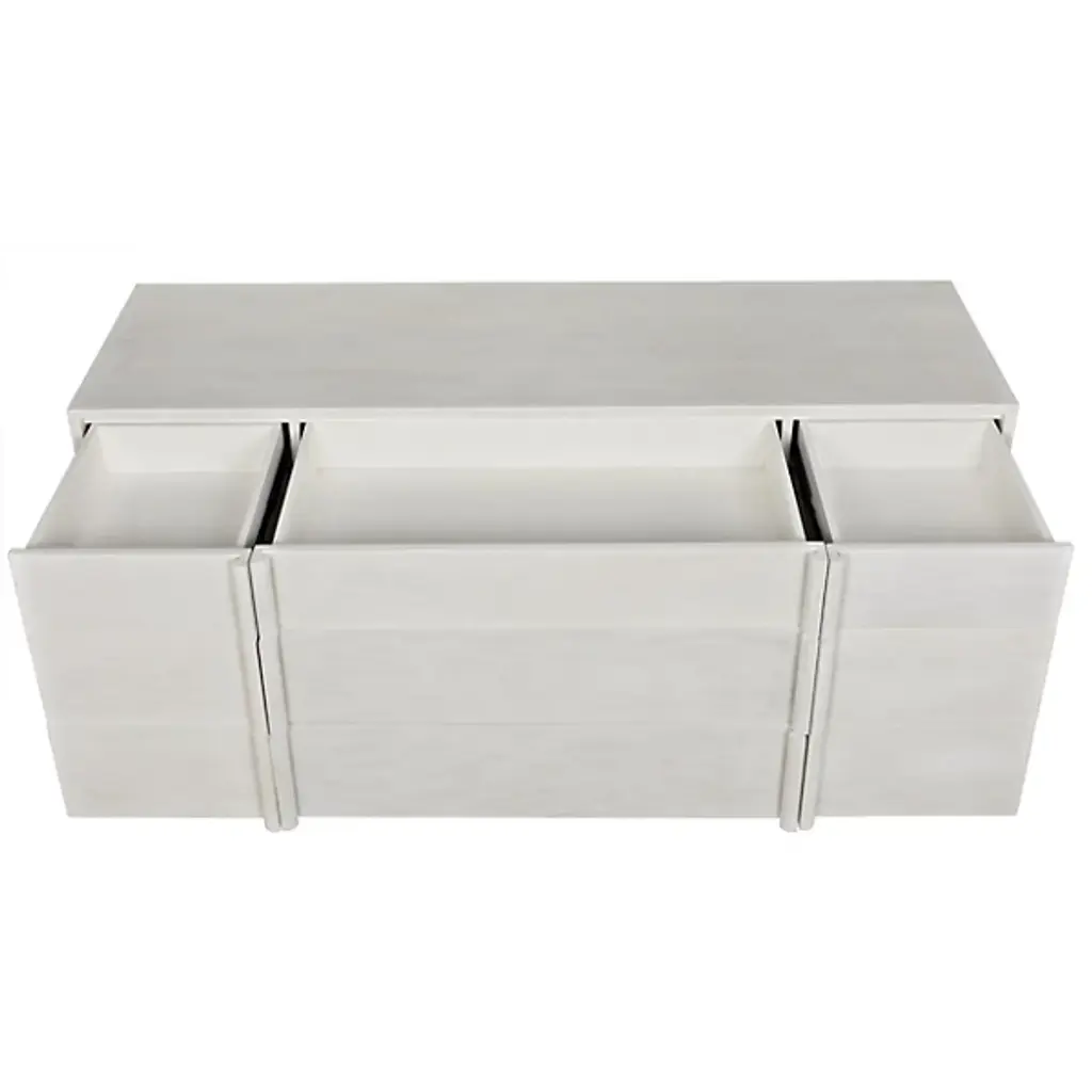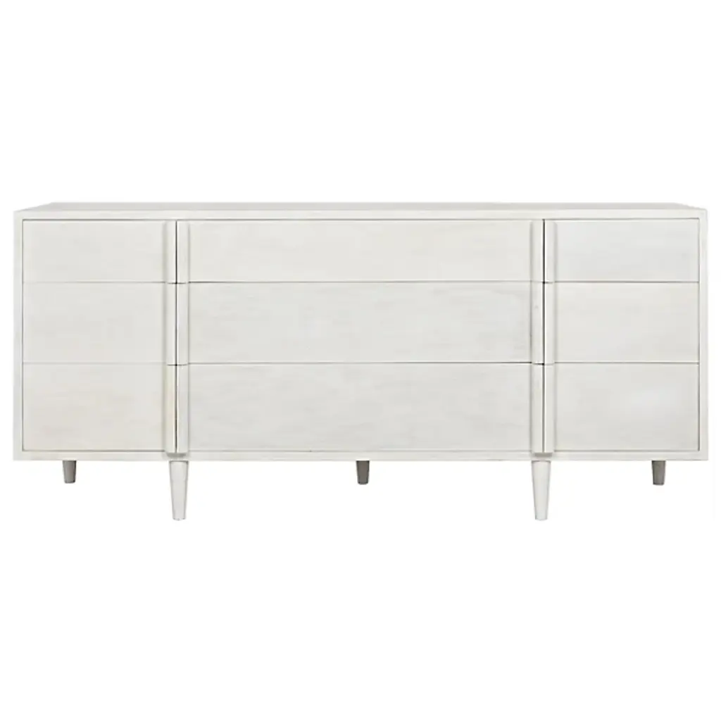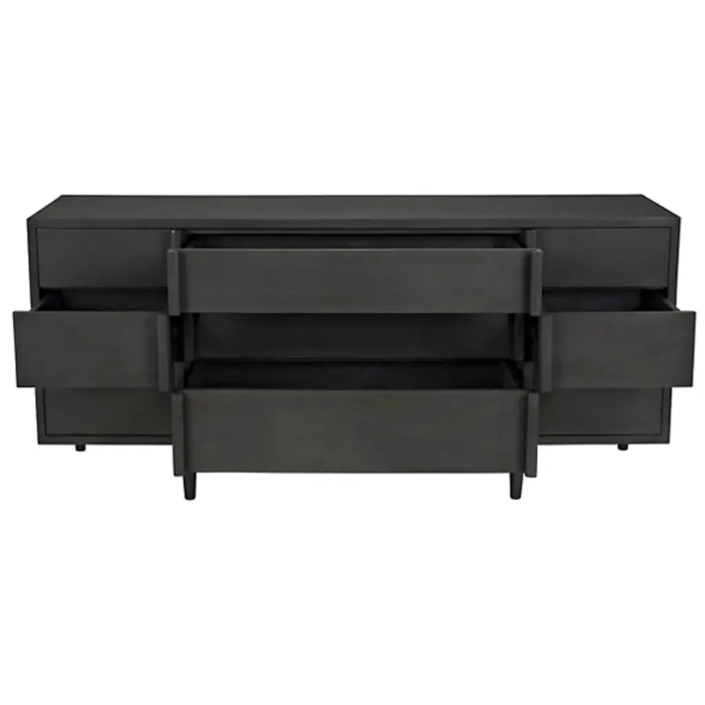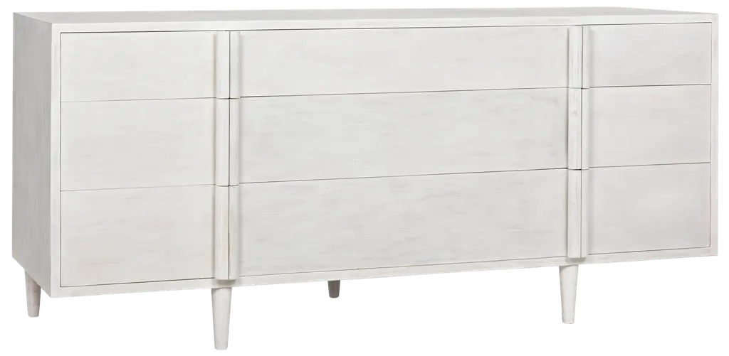 The Morton 9 Drawer Dresser from Noir combines bold, clean lines with sophisticated design, demonstrating that storage can be functional and stylish. Its tapered legs and neutral hand-applied finish enhance its refined aesthetic, while six medium and three large drawers offer ample storage space for all your essentials. Made from hand-carved mahogany, the dresser’s elegant craftsmanship and sleek design make it a versatile piece that effortlessly complements a range of interiors, adding practicality and a touch of timeless beauty to any room.