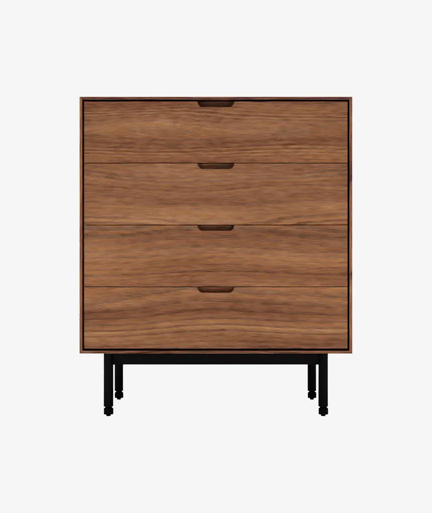 We envisioned our new Munro Collection for those who like to keep things simple. Considered proportions along with bespoke details like soft‐close drawers and recessed pulls lend to designs that shine – day or night. The Munro 4‐Drawer Dresser features plenty of storage space to keep your garments neatly tucked away, creating an organized, uncluttered bedroom retreat. Choose from Walnut or Oak, each with a Zero‐VOC, hand‐rubbed matte finish, thoughtfully chosen to highlight the unique, organic beauty of the wood grain. Solid wood edge details and solid steel legs mean that these designs are built to last – a good thing because Munro’s classic, minimalist ethos will never go out of style.
