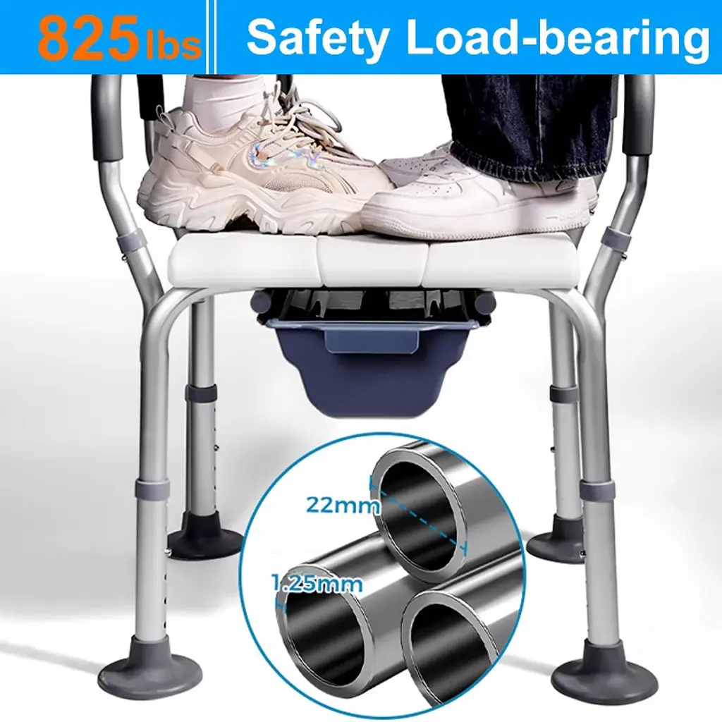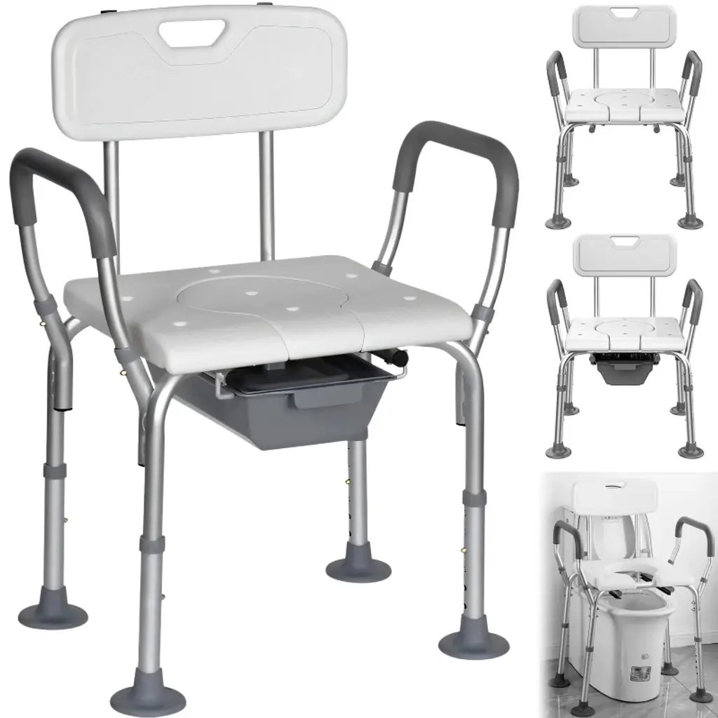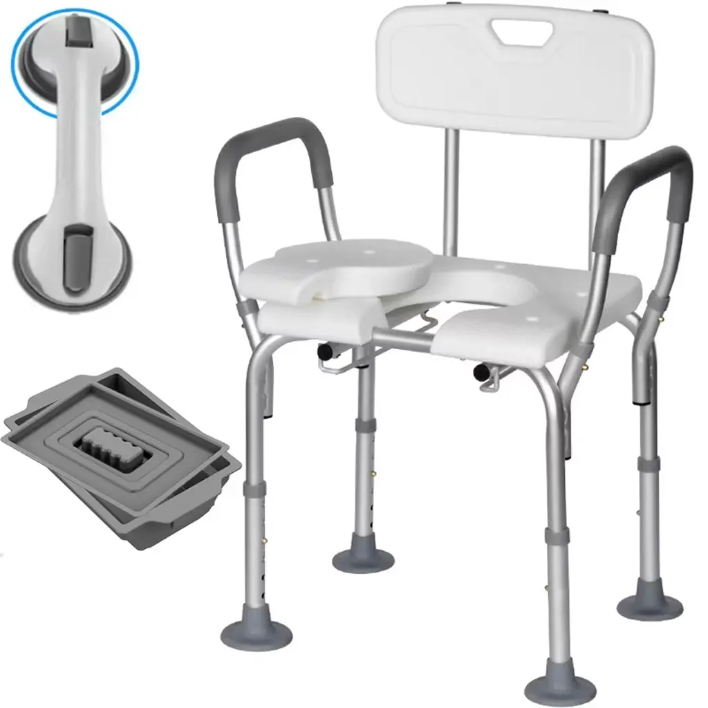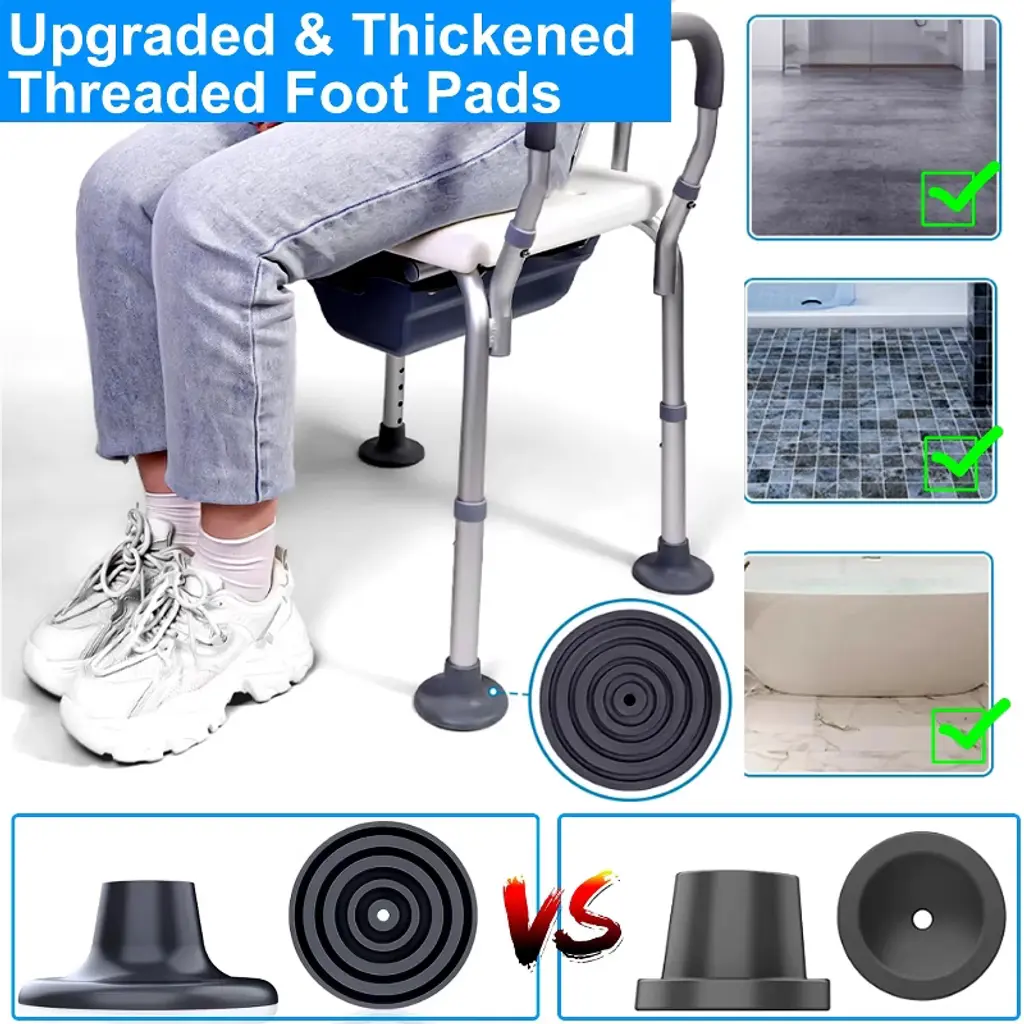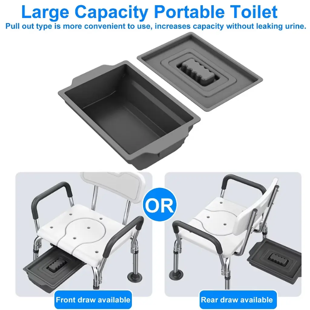【Strict Quality Control】 Shower Chairs are manufactured with strict quality control standards. Each Shower Chair and its components undergo extensive testing for optimal performance and to pass laboratory performance tests. All of this is just to give you a better shopping experience. Shower stool,shower seat,shower bench,Bath Seat,Bath Bench [3-in-1 Design]: Chair can be used as bedside commode, shower stool and raised toilet seat. A handy, multifunctional piece. [Durable, Reliable, Heavy Duty] shower chairs with arms are made with premium aluminum alloy frames. This sturdy shower chair comes with back support for extra strength up to 350LBs,is one of the best shower chair for Elderly, Adults, Disabled or people recover from surgery. [Comfort to Use] - This bath chair have a bath seat pad which is antislip and detachable, and easy to clean. This shower chair for the elderly has 4 anti-slip rubber feet to make it stable. Many drainage holes on the bathtub and pad, can help water drain during bathing. [Portable and Tool-Free assembly] - This shower chair is also portable design, makes it lightweight and easily lift in daily use. It Can be assembled just hand, with no additional tool requirement. [ADJUSTABLE HEIGHT:] For maximum convenience, we designed our shower seats to fit in most bathrooms. It has adjustable seat height can meet your needs. [Double Safety] - The strong Shower Grab Bar design works on any non-porous and flat surface, including tile, glass, acrylic and fiberglass. the grab bar provides additional stability when entering and exiting the tub or shower for comfortable experience. The suction grab bars for bathtubs and showers have comfortable easy to grip handles that ensure a non-slip grip for more stability and enhanced security.