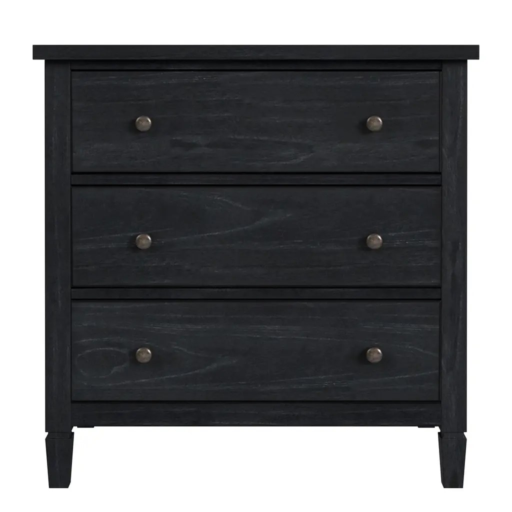 This collection brings a sense of relaxed elegance to your living space. With a gorgeous finish and bronze hardware, this classic silhouette features straight lines and traditional carved feet for a natural yet sophisticated look. It features 3 spacious drawers for storing anything from linens to clothing.
