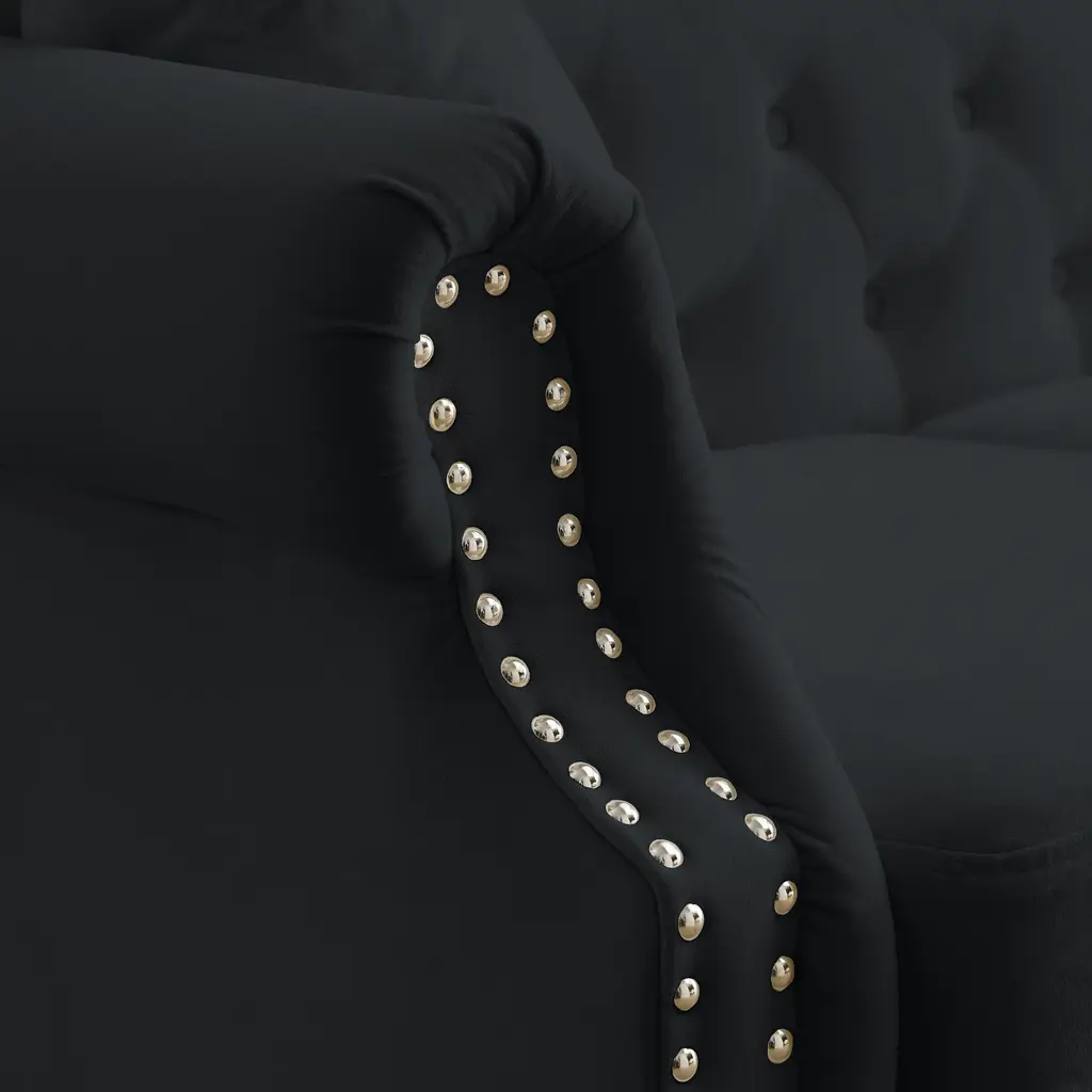 Nailhead Velvet Pitched Back Chesterfield 3-Seater Sofa - Black / Set Of 2