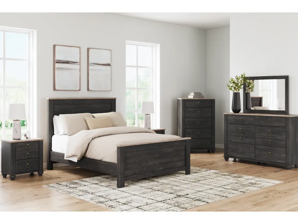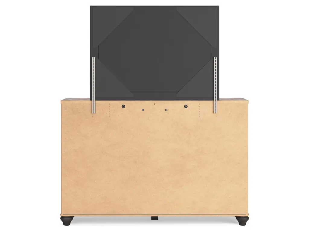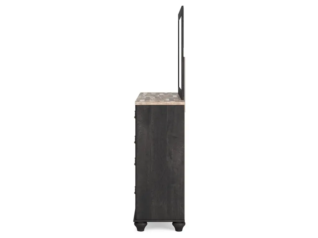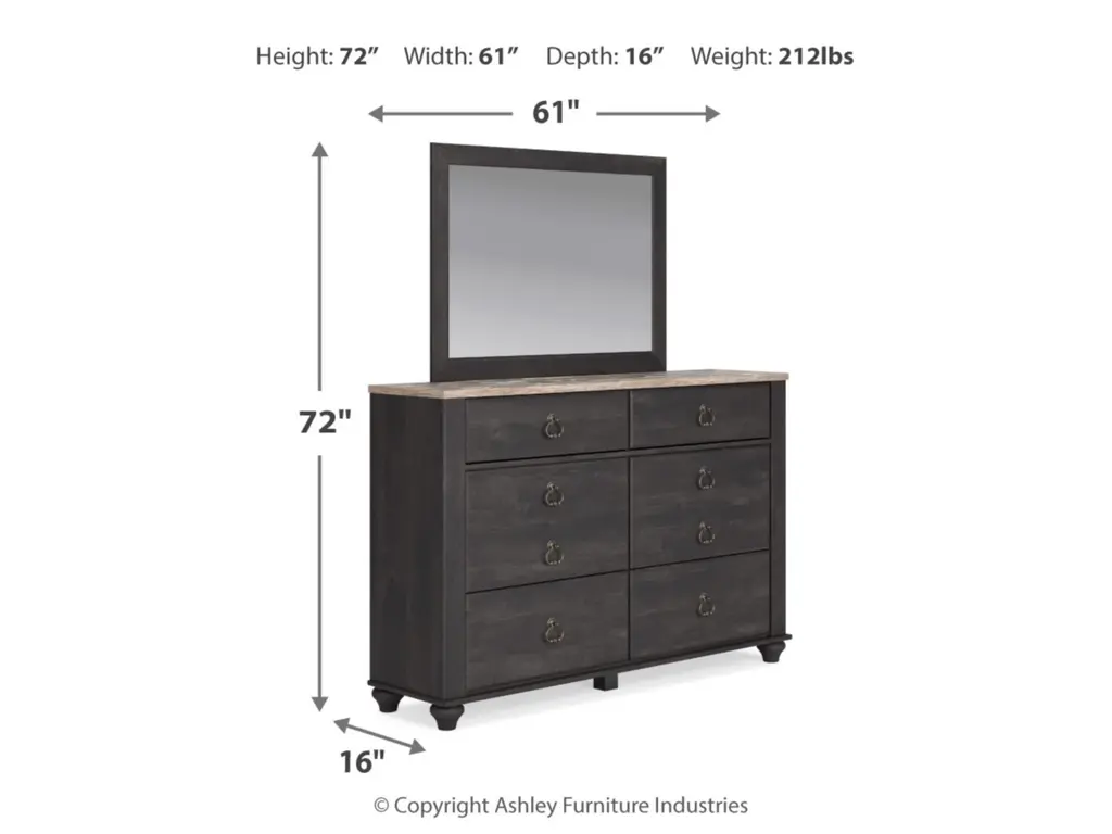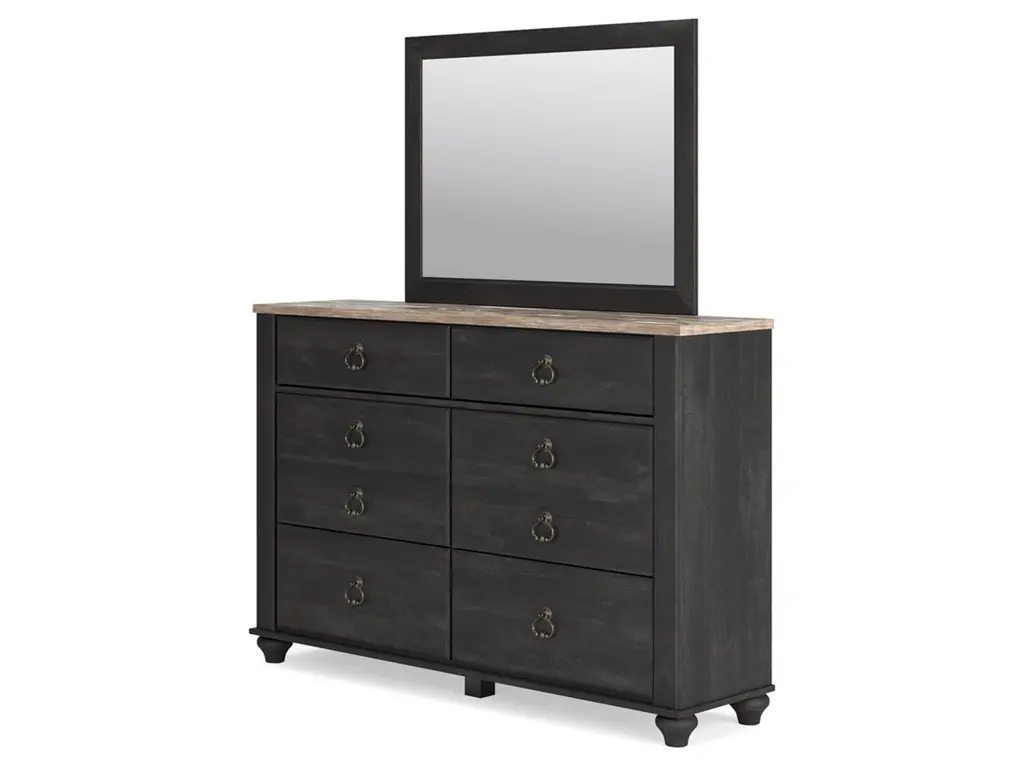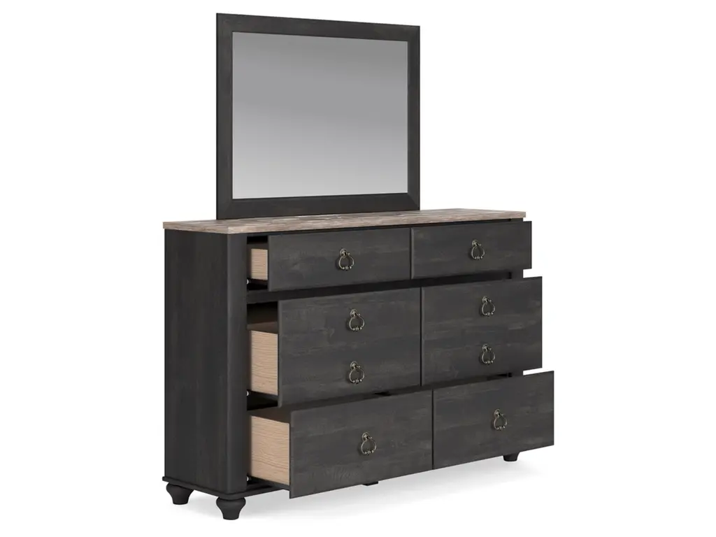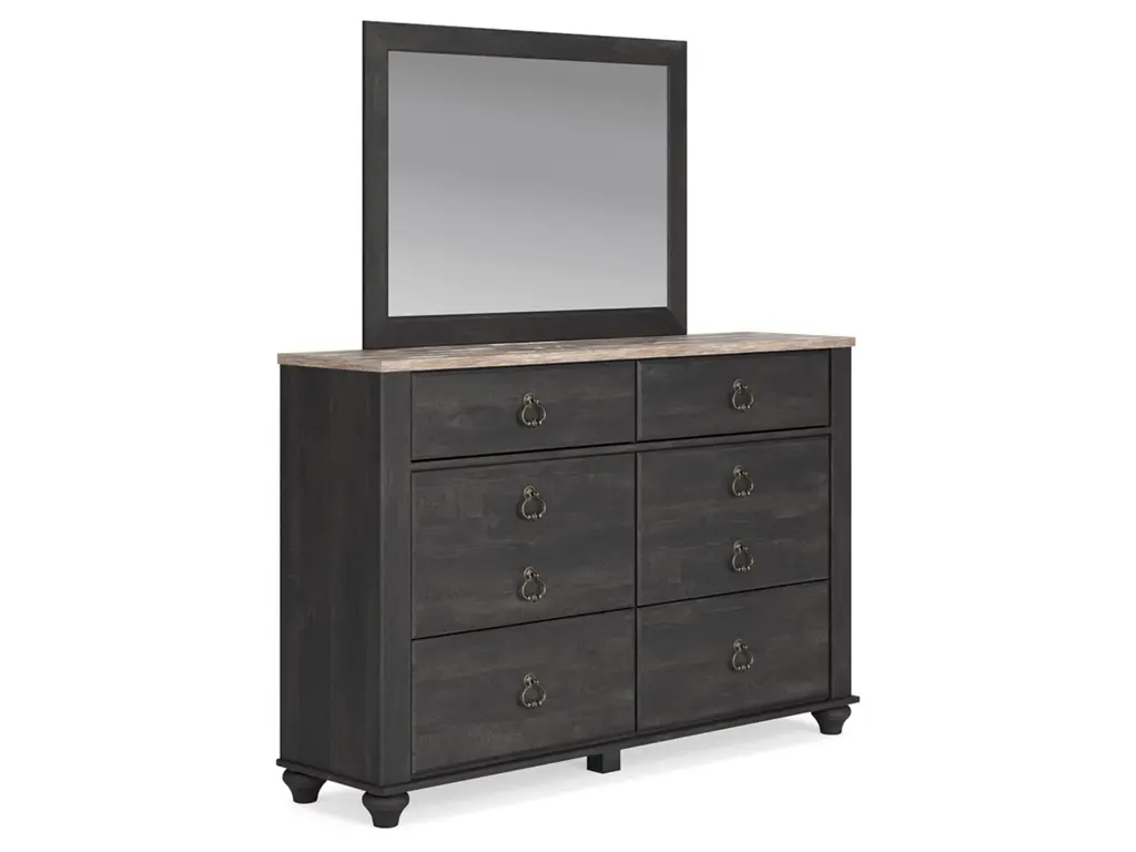 Charming French farmhouse aesthetics. Deep, industrial-inspired hues. The Nanforth dresser and mirror balances beautiful simplicity with the luxurious details of yesteryear. The distinct two-tone finish is bold without sacrificing the piece's quaint character. And with smooth-gliding drawers for your assorted storage needs, the dresser's functionality goes hand-in-hand with your unique eye for vintage-inspired design.