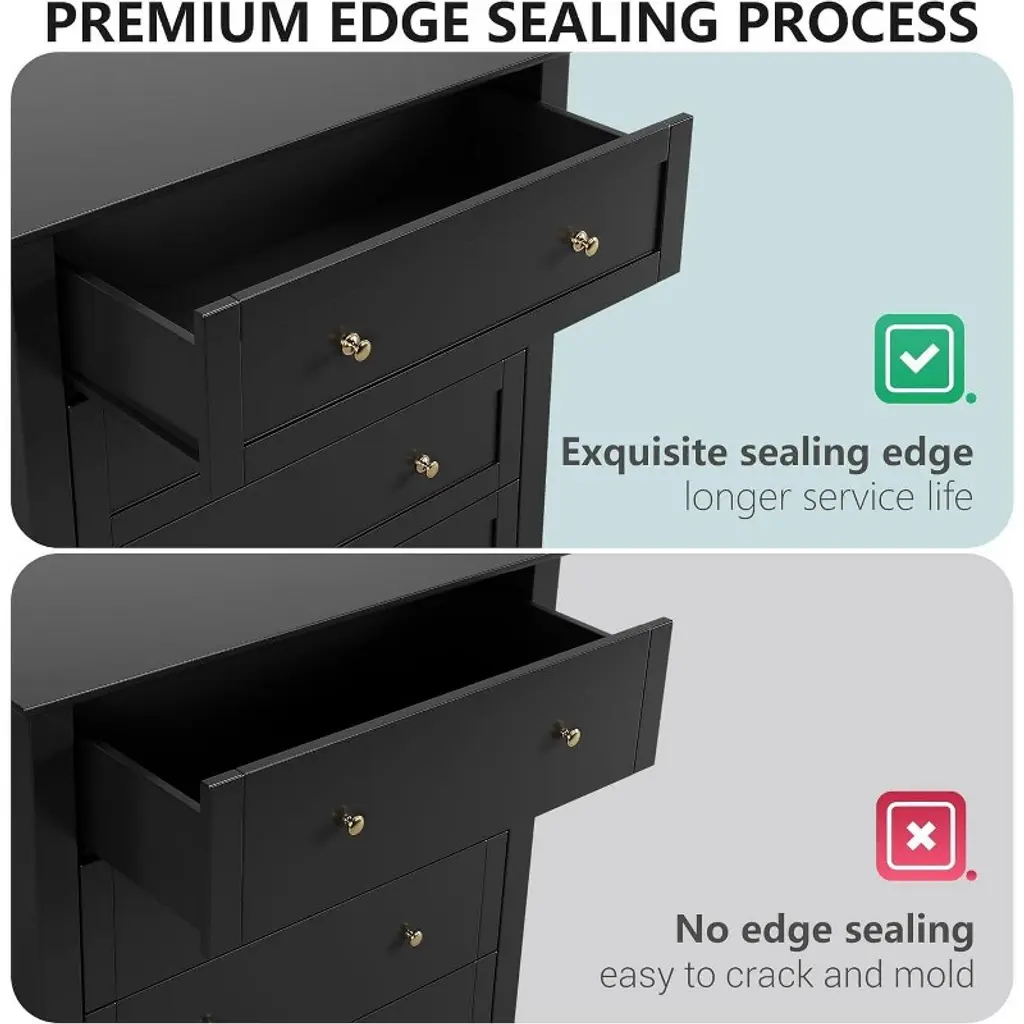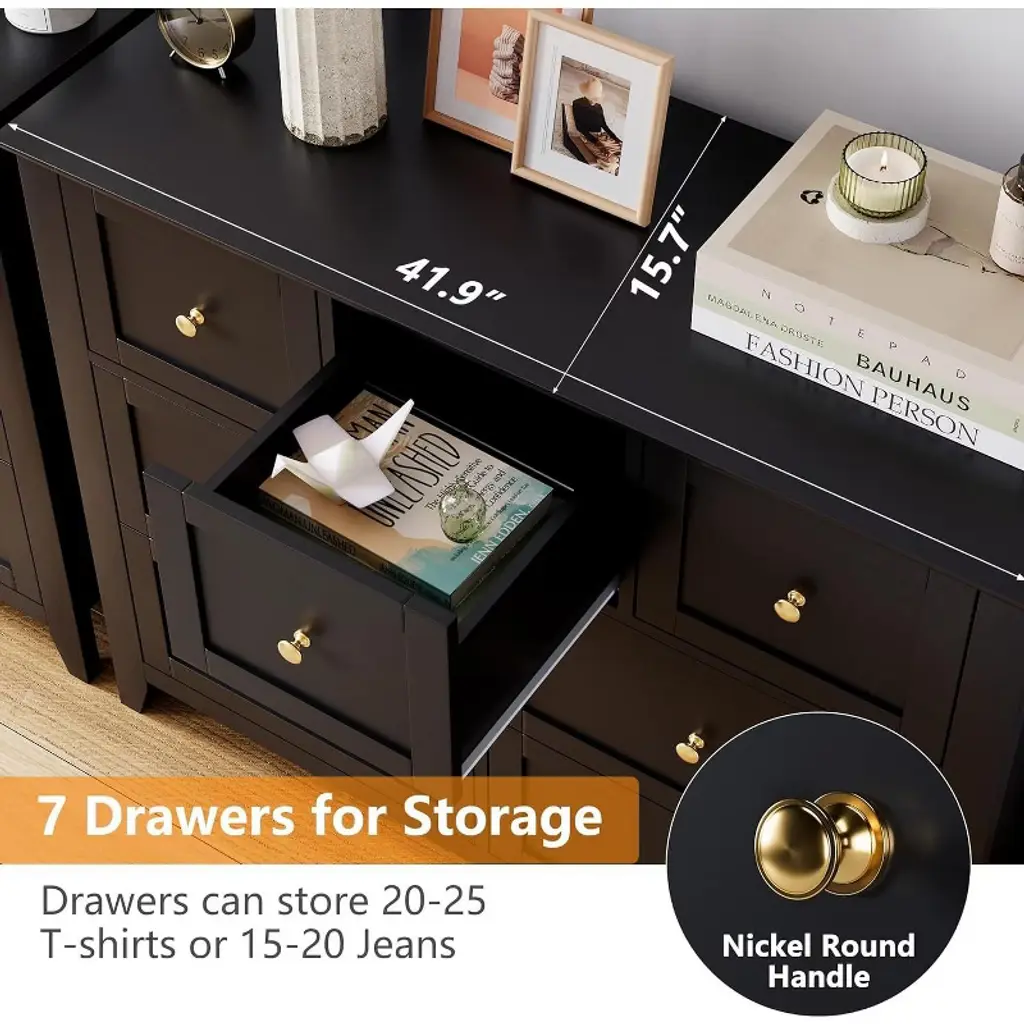 Nasitip 7 Chest Of Drawer Dresser, Modern And Stylish Dresser, Deep Drawers And Nickel Round Handle,black