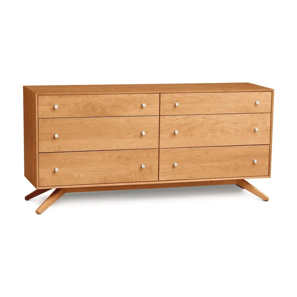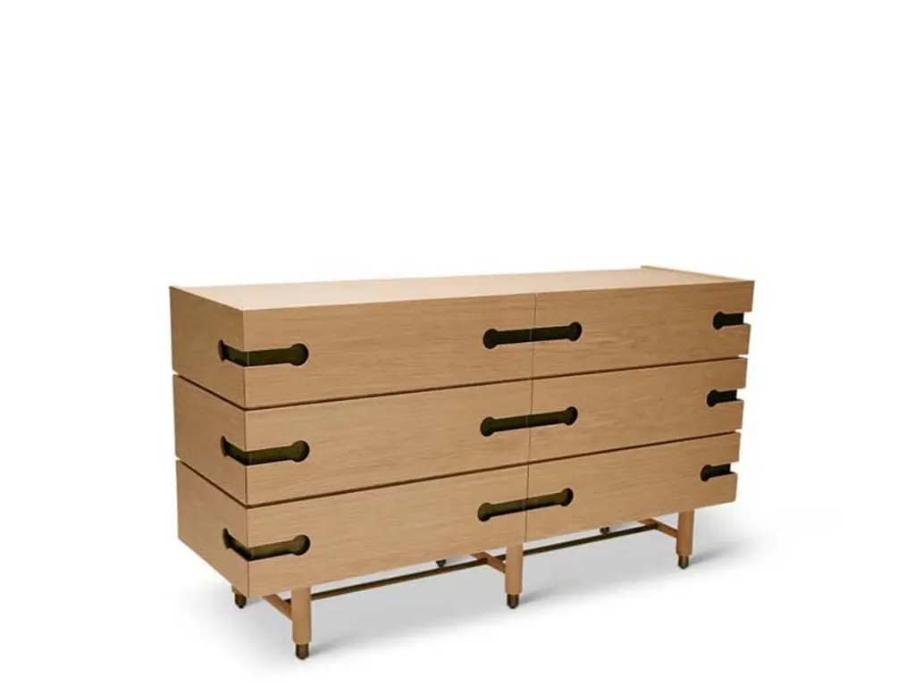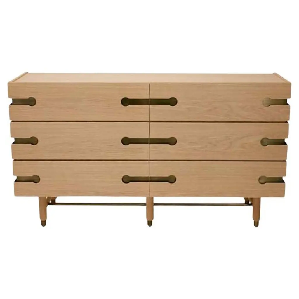 The 6-drawer Niguel dresser features 6 drawers, brass cap feet, and brass inlaid details.The Lawson-Fenning Collection is designed and handmade in Los Angeles, California. Reach out to discover what options are currently in stock.