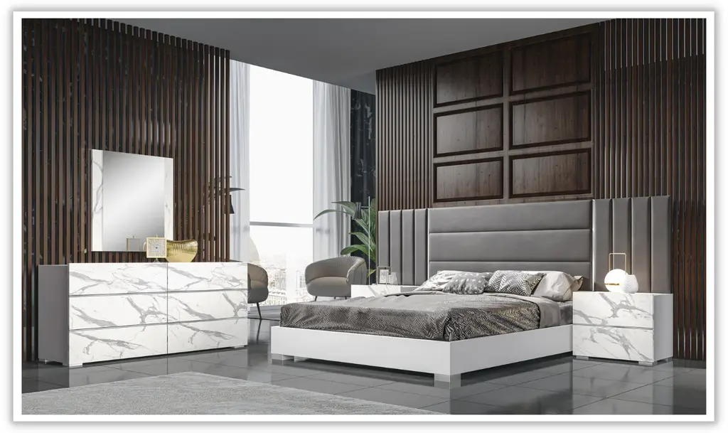 Discover the Nina Premium rectangular wooden chest from Jennifer Italia's exclusive collection. Crafted in Italy, this chest is a testament to impeccable craftsmanship. Its standout feature is the striking white and gray marble finish, adding an elegant touch to your space. Chrome accents beautifully complement the design, creating a modern aesthetic that appeals to contemporary tastes. Elevate your home with this piece that seamlessly marries quality and style.