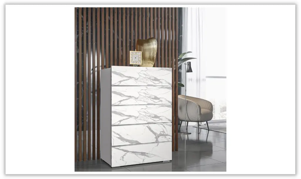 Nina 5- Drawers Premium Rectangular Wooden Chest In White
