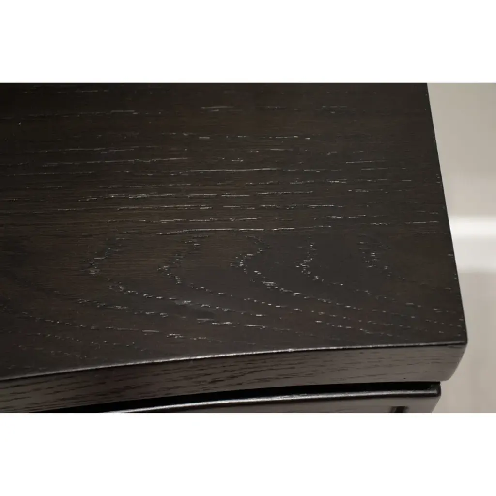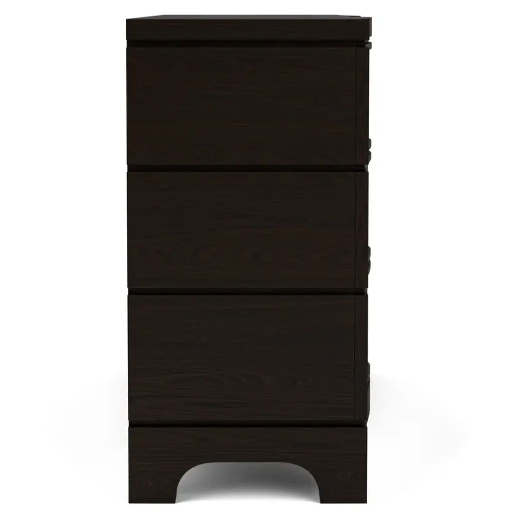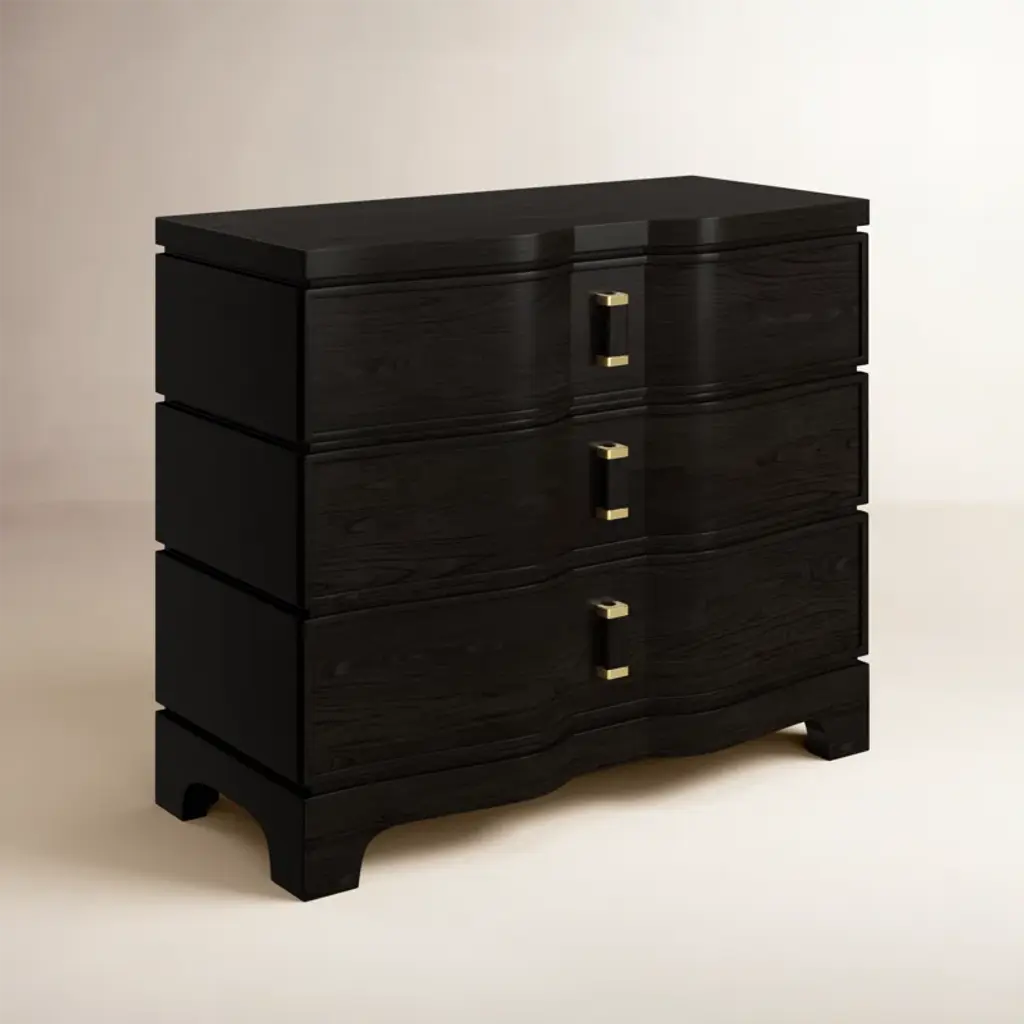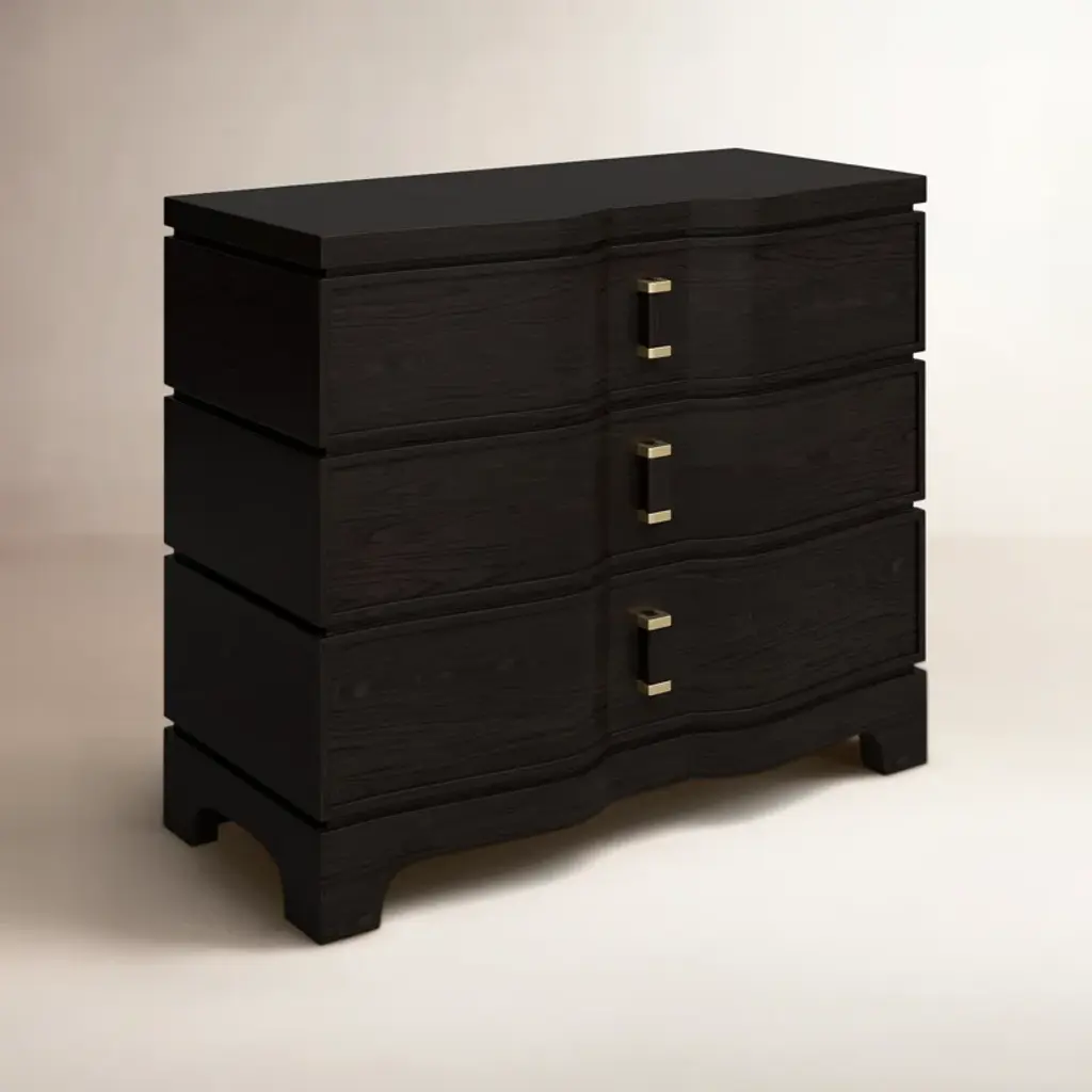 Lydia's sleek lines, complemented by rounded details, achieves a timeless modern contemporary style. The dark cabernet finish, combined with white fabrics, imparts a fresh and relaxed appearance. Linear hardware introduces visual interest, while maintaining an overall minimalistic aesthetic.
