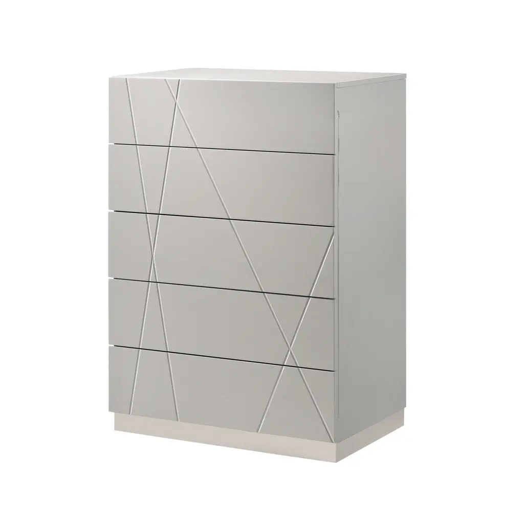 Norman Bedroom Furniture offers a unique design and outlook of the modern bedroom. Aiming for gentle yet elegant, this grey lacquered finish set will enhance the look of bedrooms of different sizes and colors. Whether choosingthe entire set, its individual platform bed, or any of the case goods, you can rest assured that this quality furniture is meant to last. Our case goods are equipped with full extension glides.