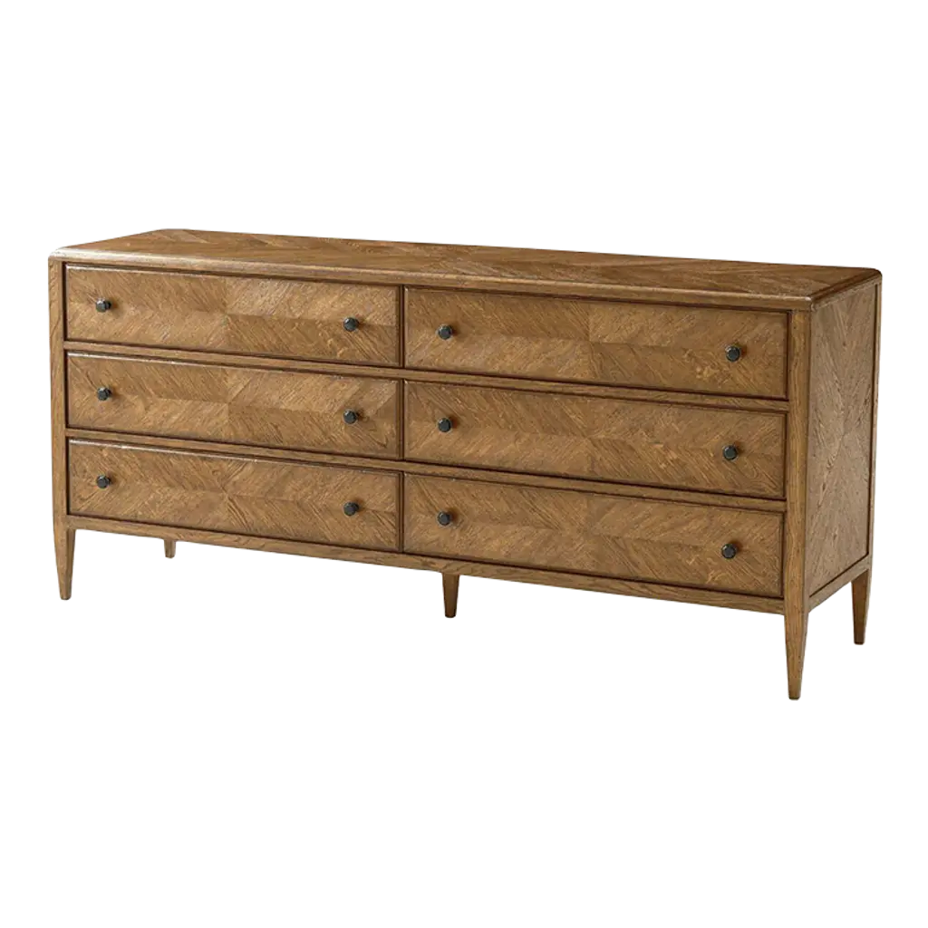 A luminary moment, NOVA’s architecturally detailed oak parquetry dresser fitted with six hand-veneered drawers is an ideal piece for your bedroom. The Dawn finish pairs immaculately with the tapered oak legs and fine Verde Bronze handles.