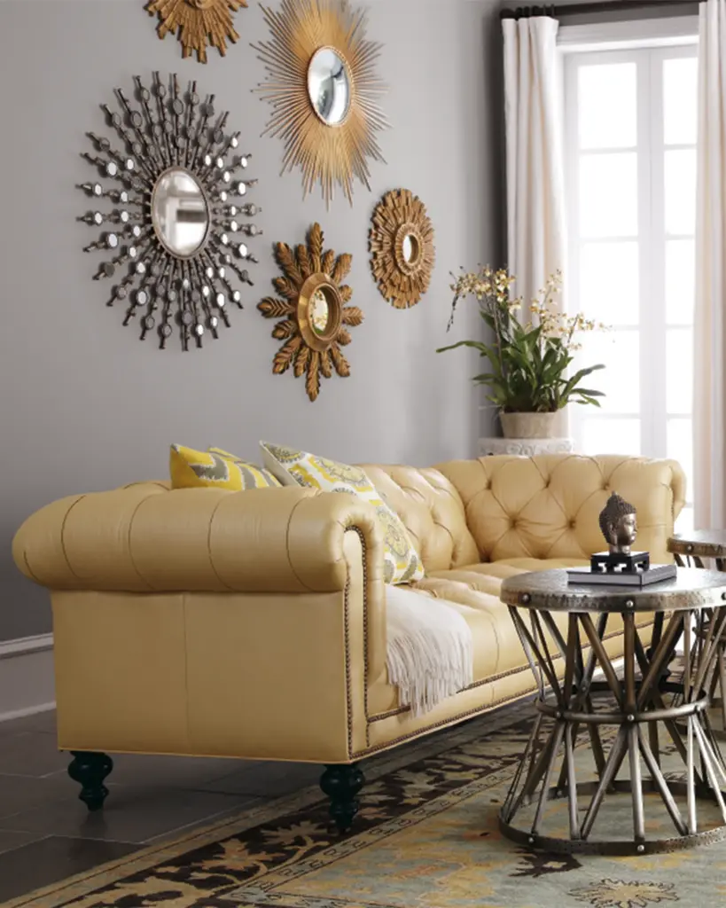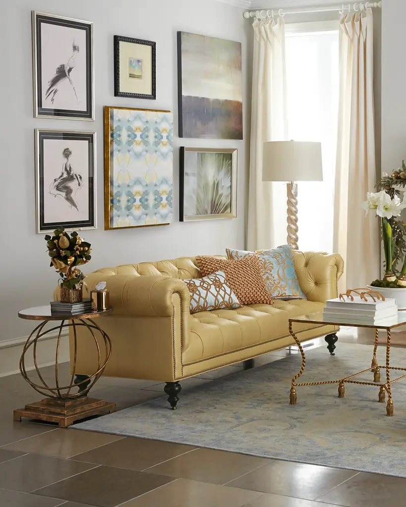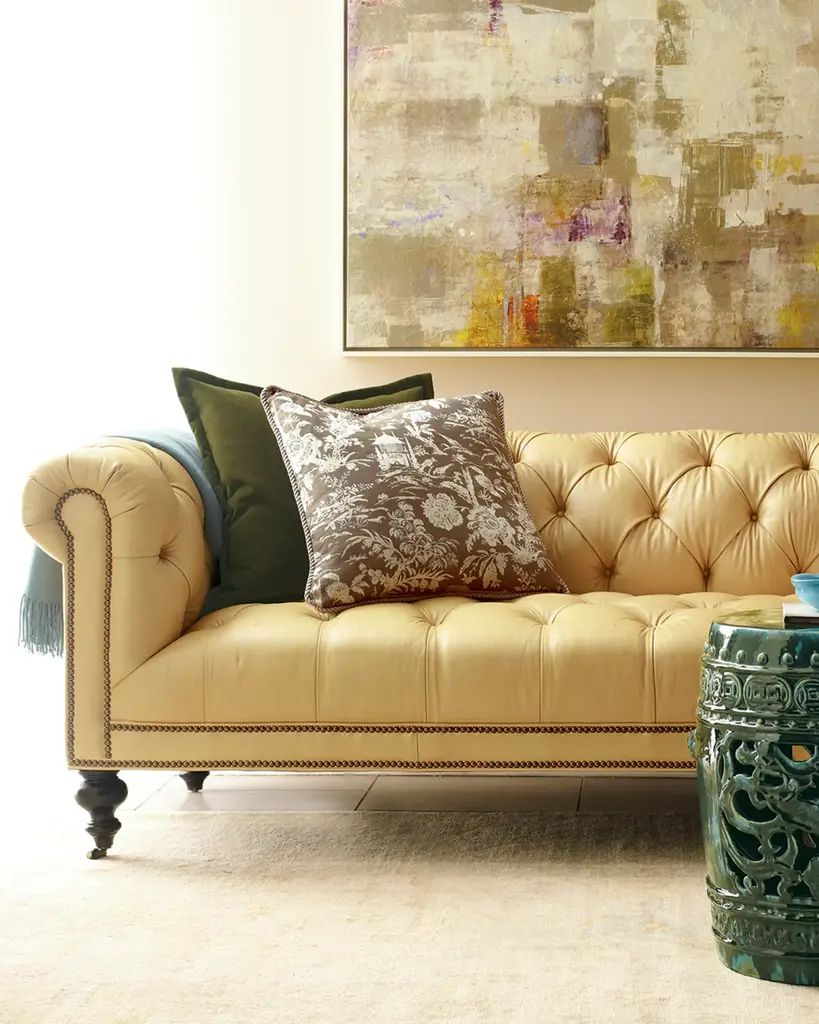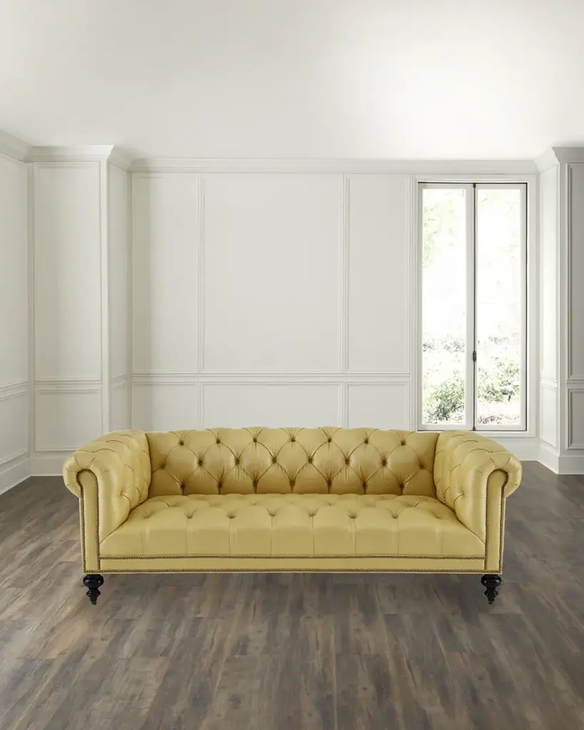 Old Hickory Tannery Morgan Sunshine Leather Chesterfield Sofa 86" | Horchow