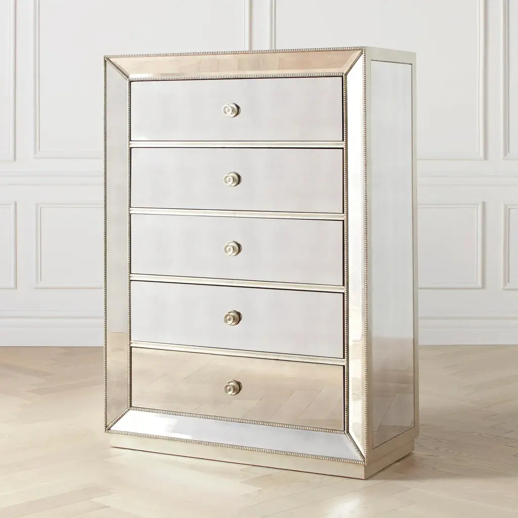 Topped with antiqued mirror paneling, the pieces in our Omni Collection deliver instant drama and shine to the bedroom. Designed to complement a variety of decor styles, each features a streamlined silhouette and charming beaded trim with a hand-applied silver-leaf finish. room. Click here to learn more about the Omni Collection - Omni Care Card