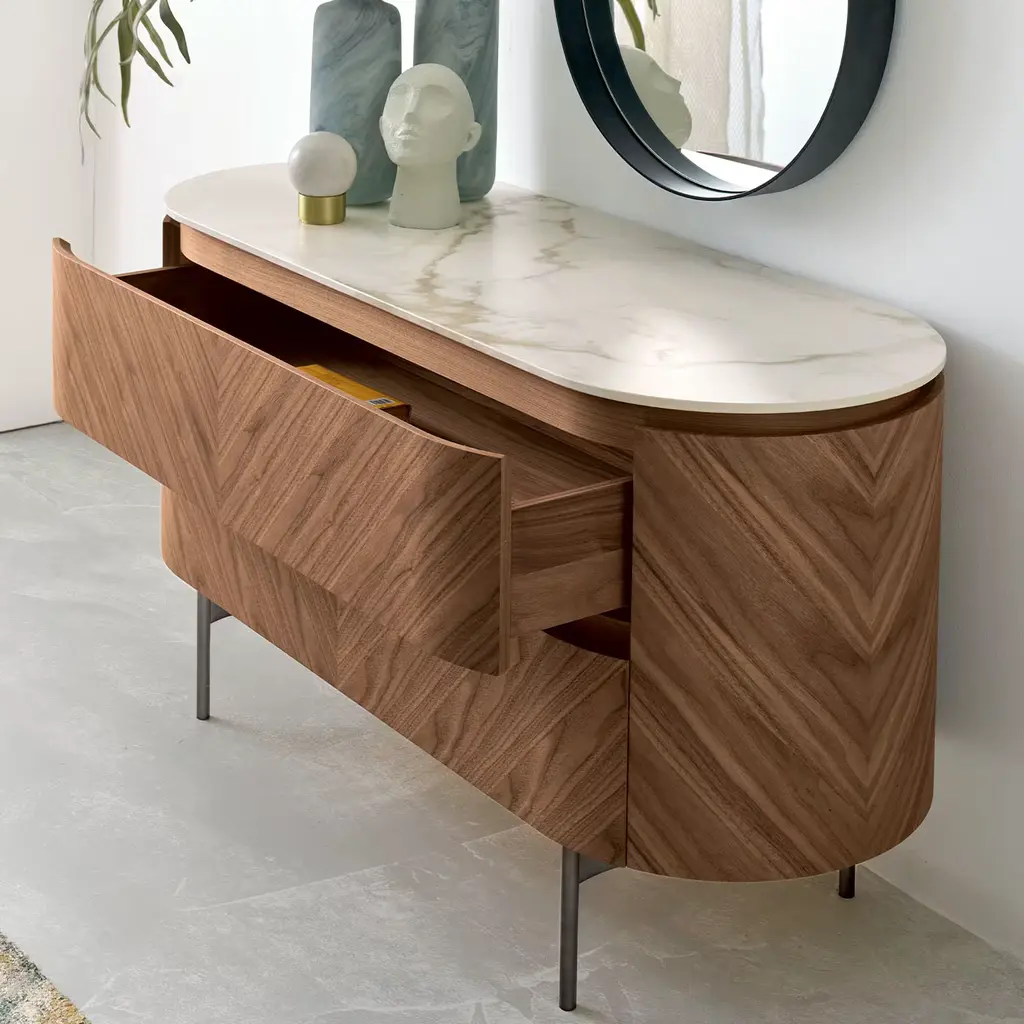 Opera Dresser In Walnut Canaletto With Calacatta Ceramic Top
